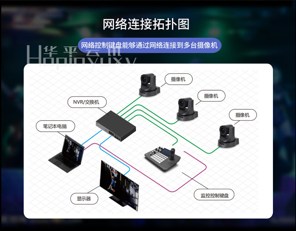 华平云讯4K NDI PTZ Camera会议摄像机云台AI跟踪文化传媒舞台教堂教学直播酒吧导播摄像头支持OBS/VMIX 4K60帧 20倍NDI(三台)+NDI控制键盘