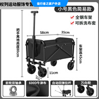 柏潮户外露营车可折叠手推车超大野营野餐营地车拉杆小拖车摆摊小拖车 黑色5寸橡胶轮/无刹车/承重200斤 加粗钢架丨加厚面料