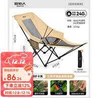 原始人(The Primitive)户外折叠椅躺椅露营椅子月亮椅便携办公室午休钓鱼沙滩休闲 脚托款网纱卡其【三档可调】