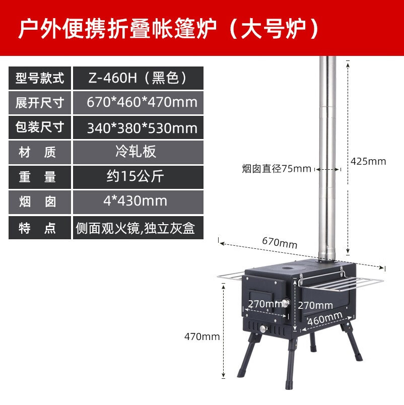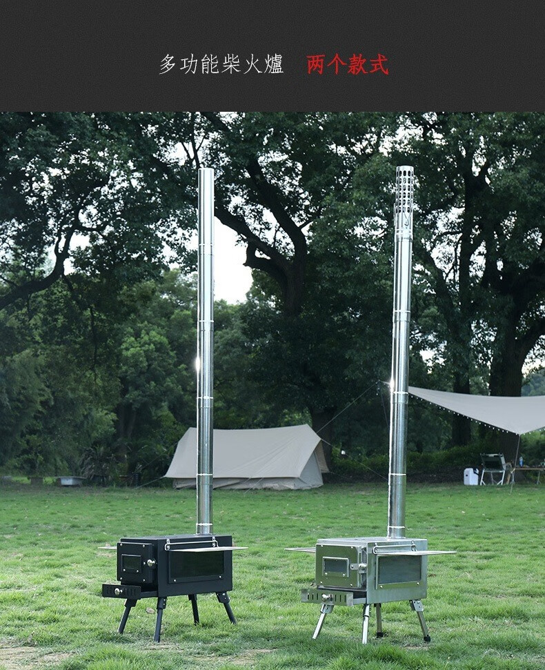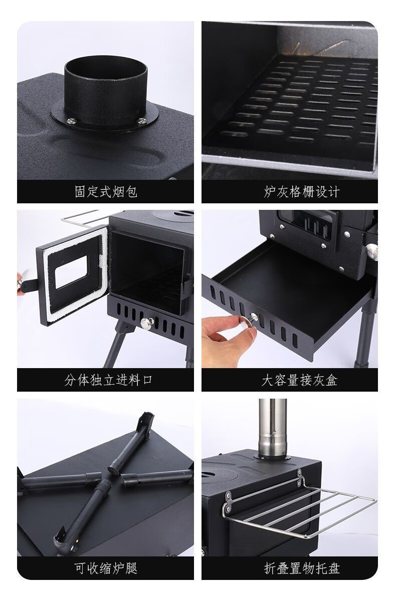 凰一折叠多用取暖帐篷炉 户外不锈钢柴火炉野餐露营轻便柴火灶 小号黑色帐篷炉加高套餐