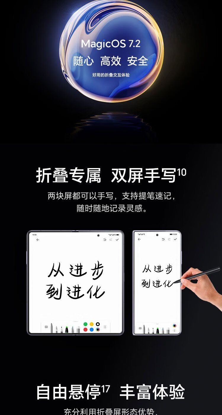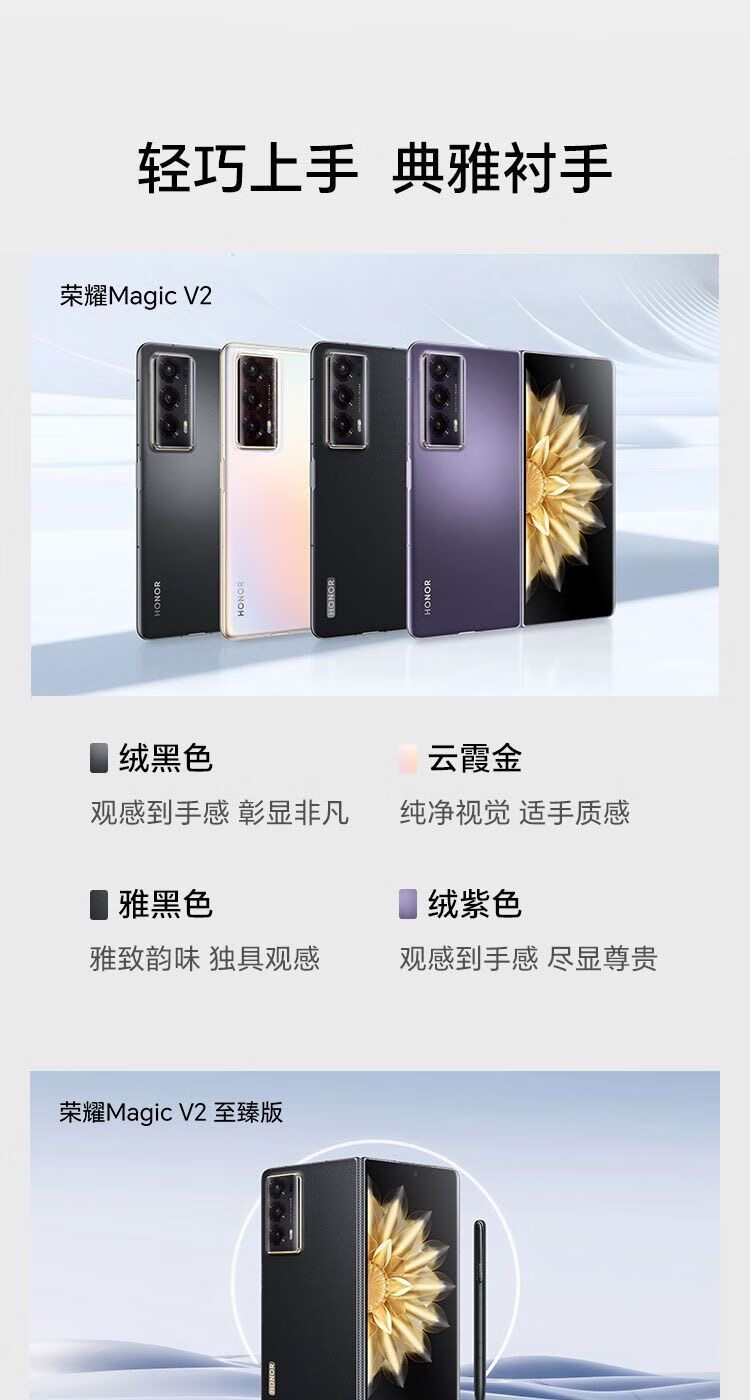 荣耀Magic V2 9.9mm超轻薄 零调光护眼双屏5G折叠手机J 雅黑色 16GB+256GB