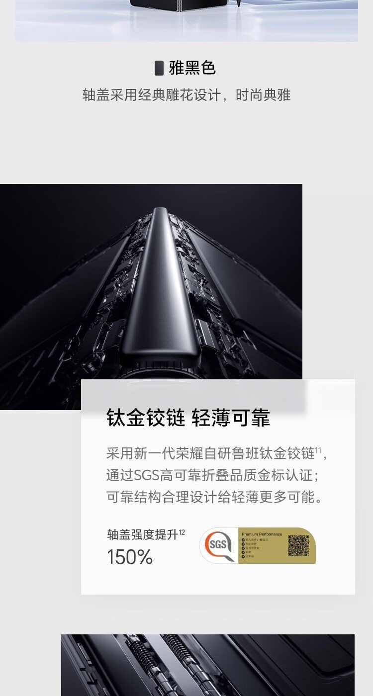 荣耀Magic Vs 超轻薄折叠屏5G商务智能拍照手机 双萤幕J 亮黑色 12GB+512GB