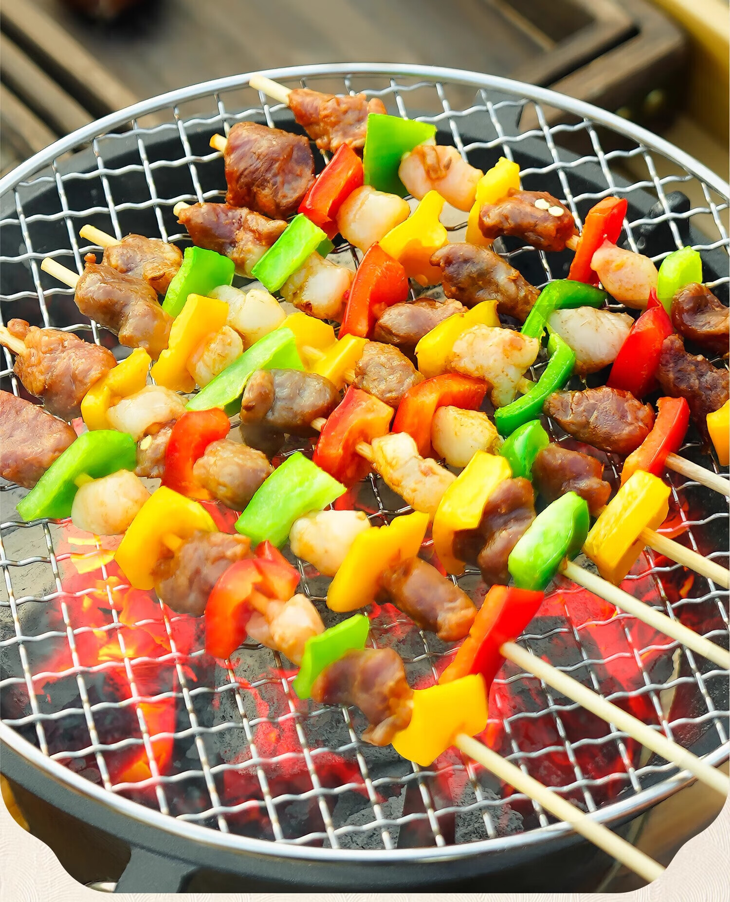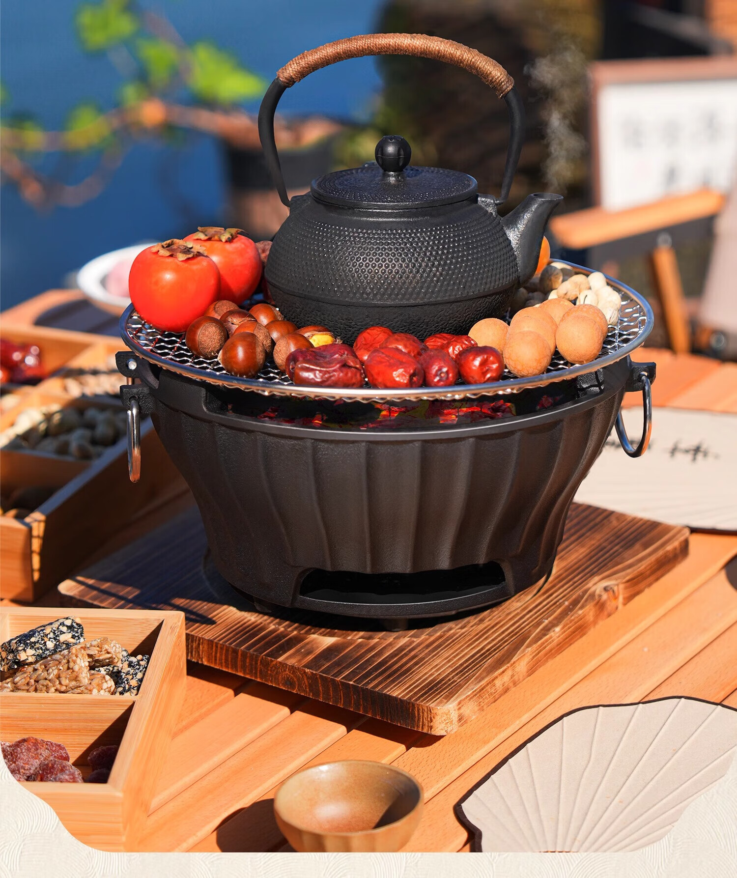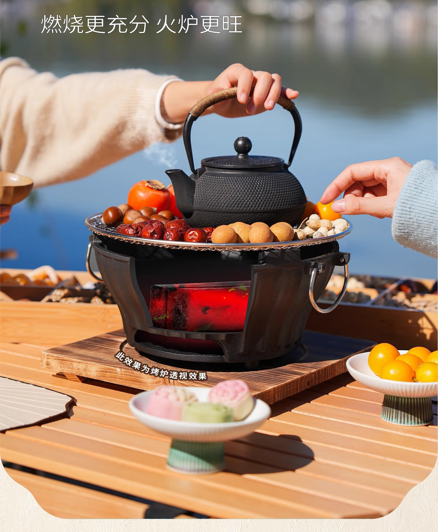 ZKHE户外露营铸铁烧烤炉围炉煮茶家用庭院便携多功能圆形木炭碳烤火炉