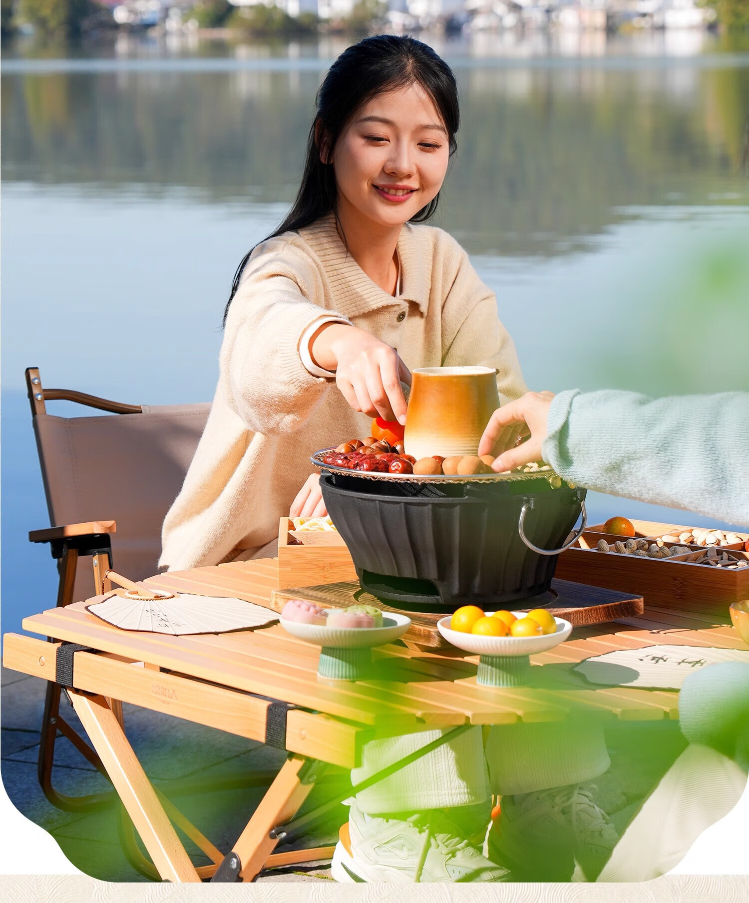 探险者探险者围炉煮茶套装电碳两用围炉桌烧烤煮茶一体烤火炉家用围聚煮 [60cm]电碳两用围炉桌
