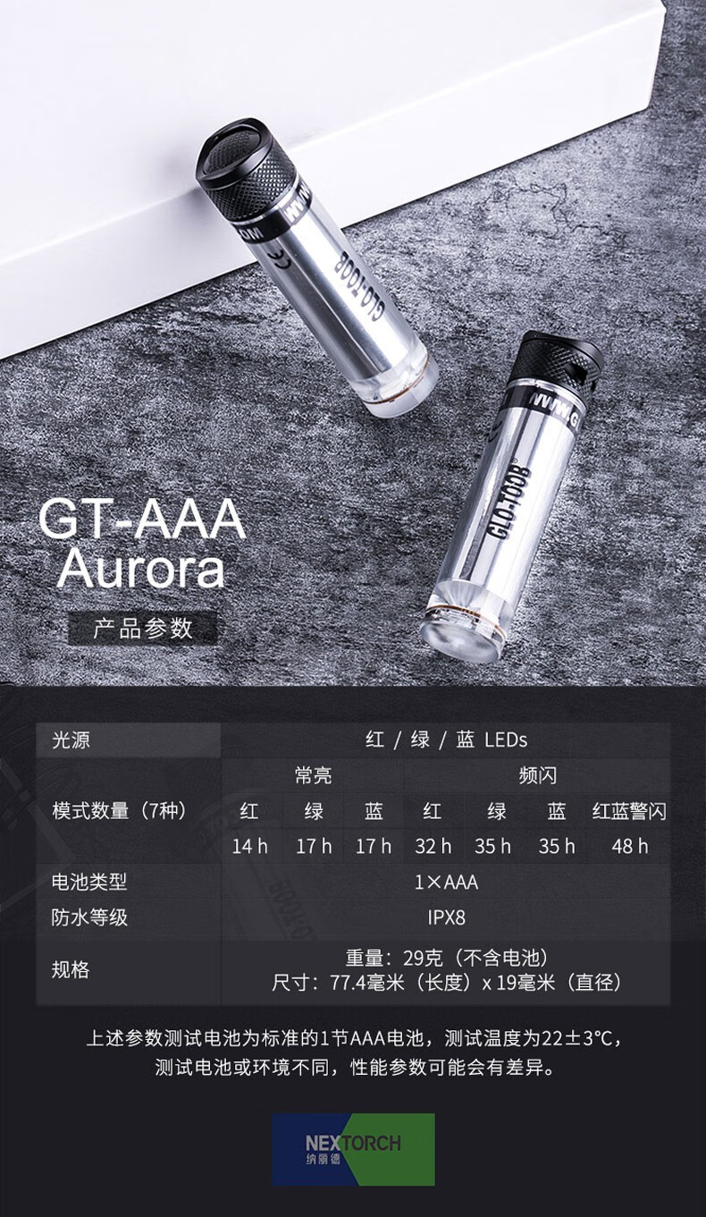 纳丽德(NEXTORCH)GT-AAA Aurora 多光源战术信号灯骑行登山防水应急装备信号灯 GT-AAA Aurora