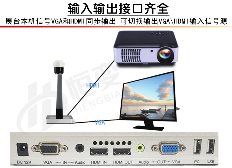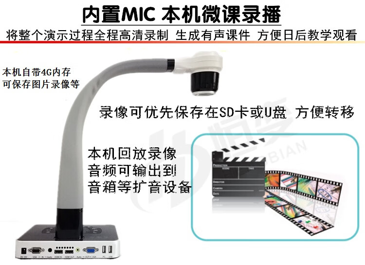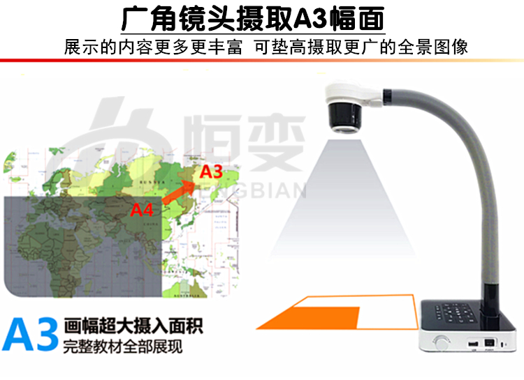 恒变(HENGBIAN) 实物展台视频展示台苹果电脑直播教学高拍仪显示屏SUP电视机投影硬笔书法绘画 HB12实物展台+7英寸监视器不用扭头看大屏幕了