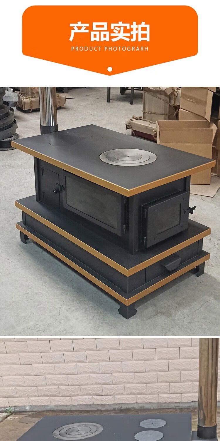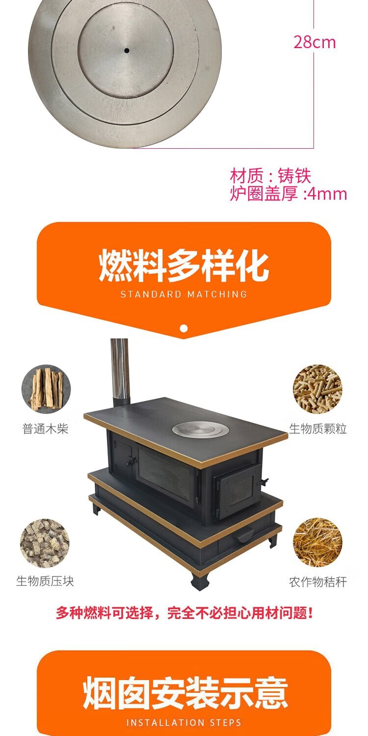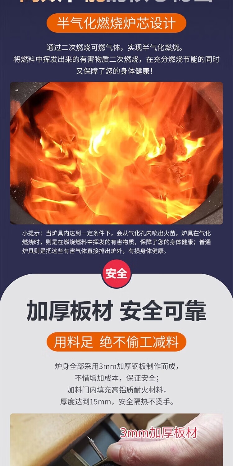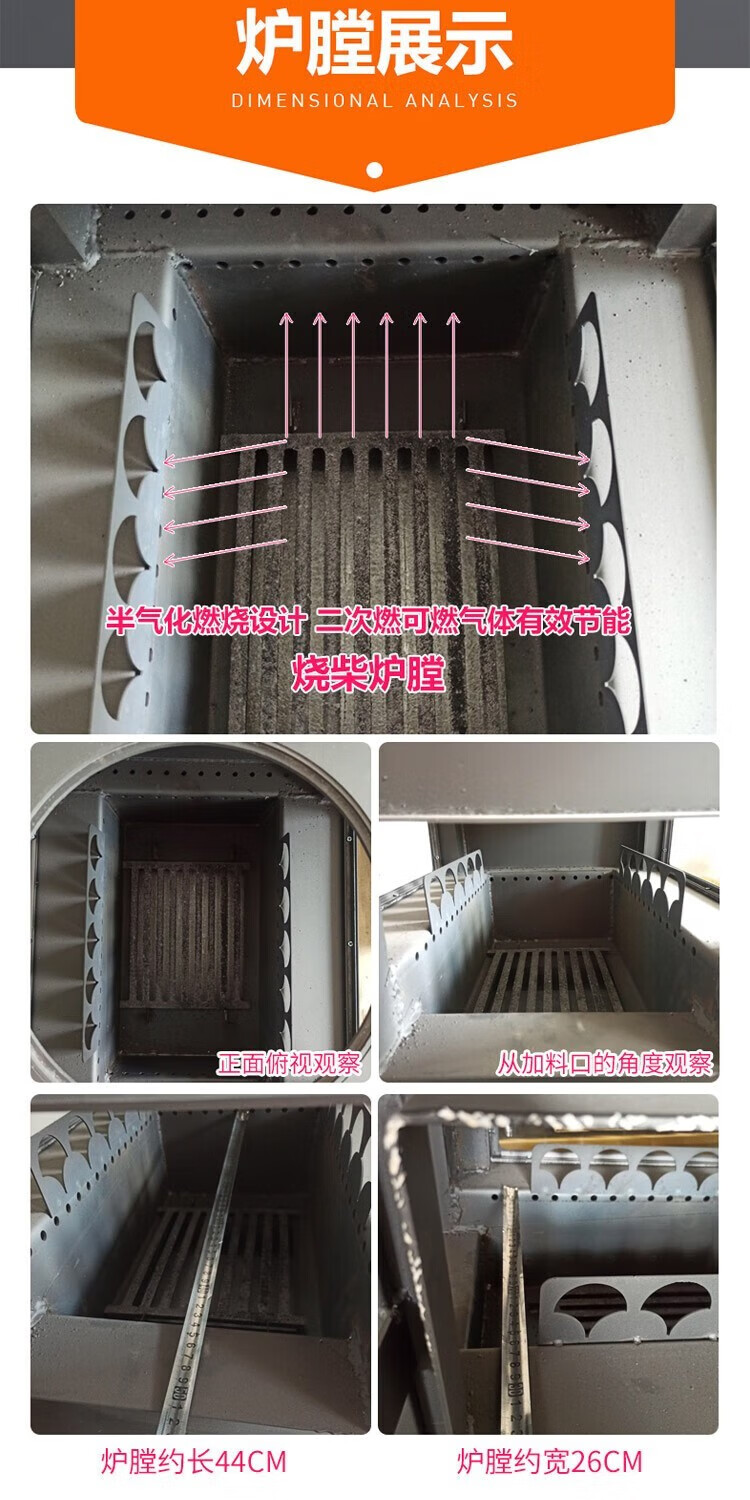 驰笠农村柴火炉家用冬季木煤气取暖炉烧木柴气化炉多功能柴火灶烤火炉 烧柴-配不锈钢烟囱(无金边款)