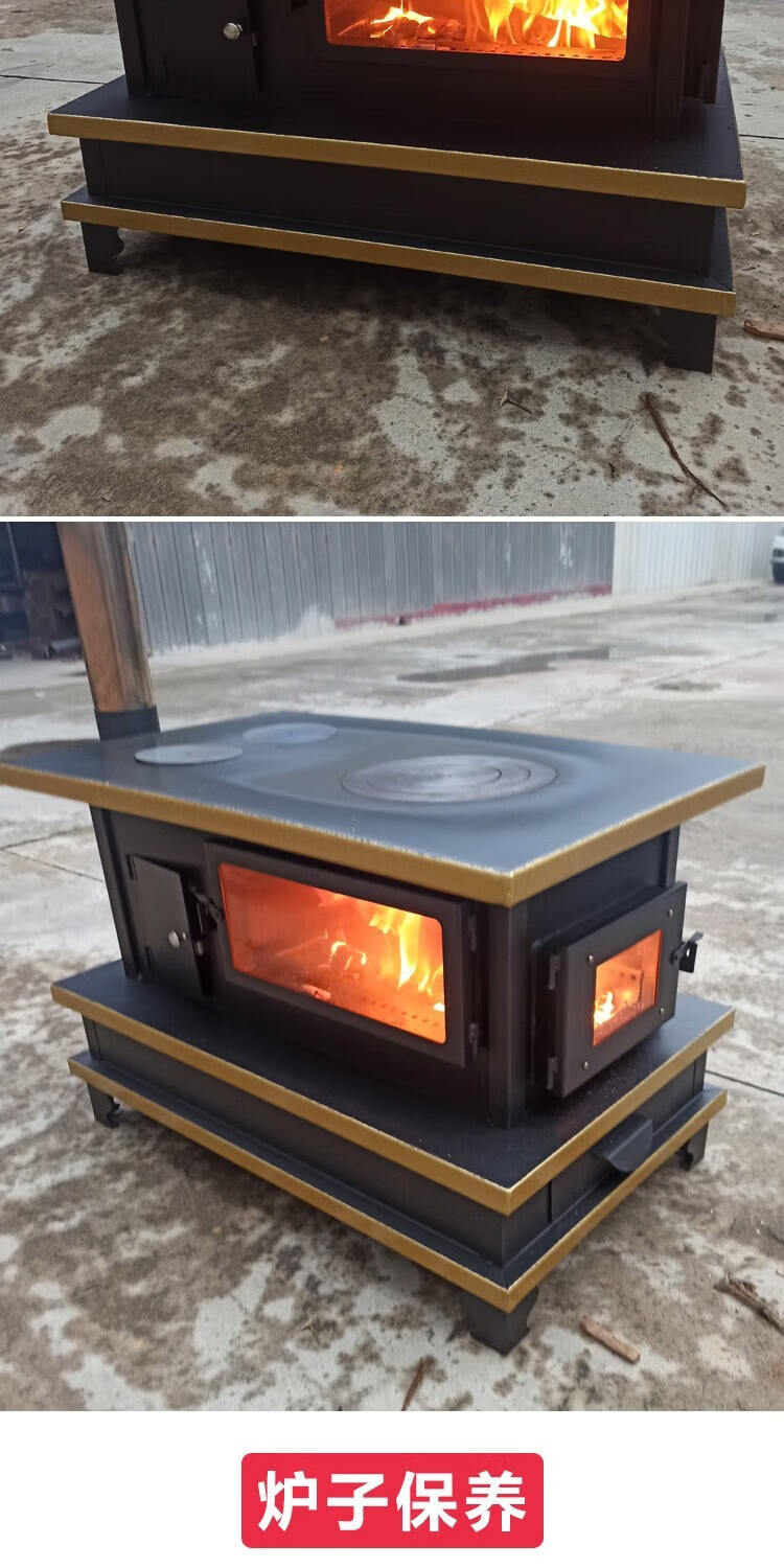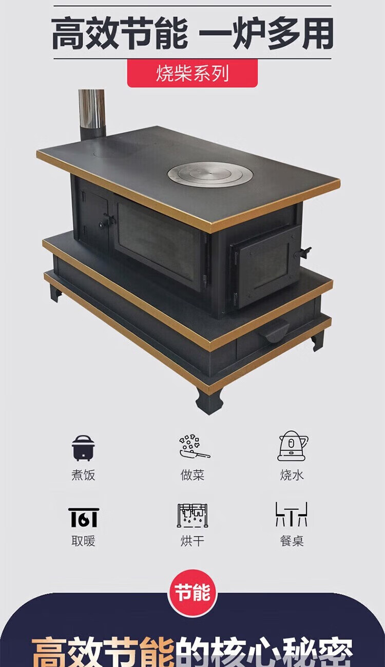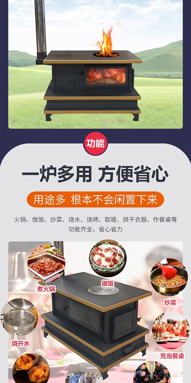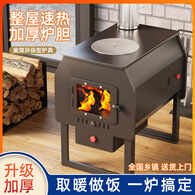农村柴火炉 家用冬季木煤气取暖炉烧木柴气化炉多功能柴火灶烤火炉 烧柴-配不锈钢烟囱