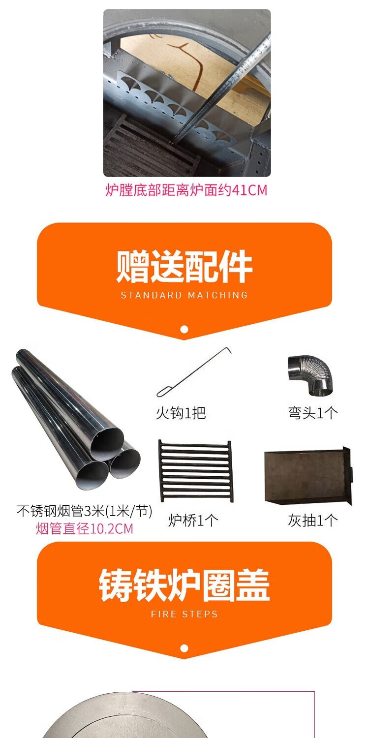 欧乐奇柴火取暖炉冬天家用室内无烟取暖器柴煤两用烤火炉子网红采取暖炉 大号+4米烟筒2弯头+防烫网礼包【60-102平方】