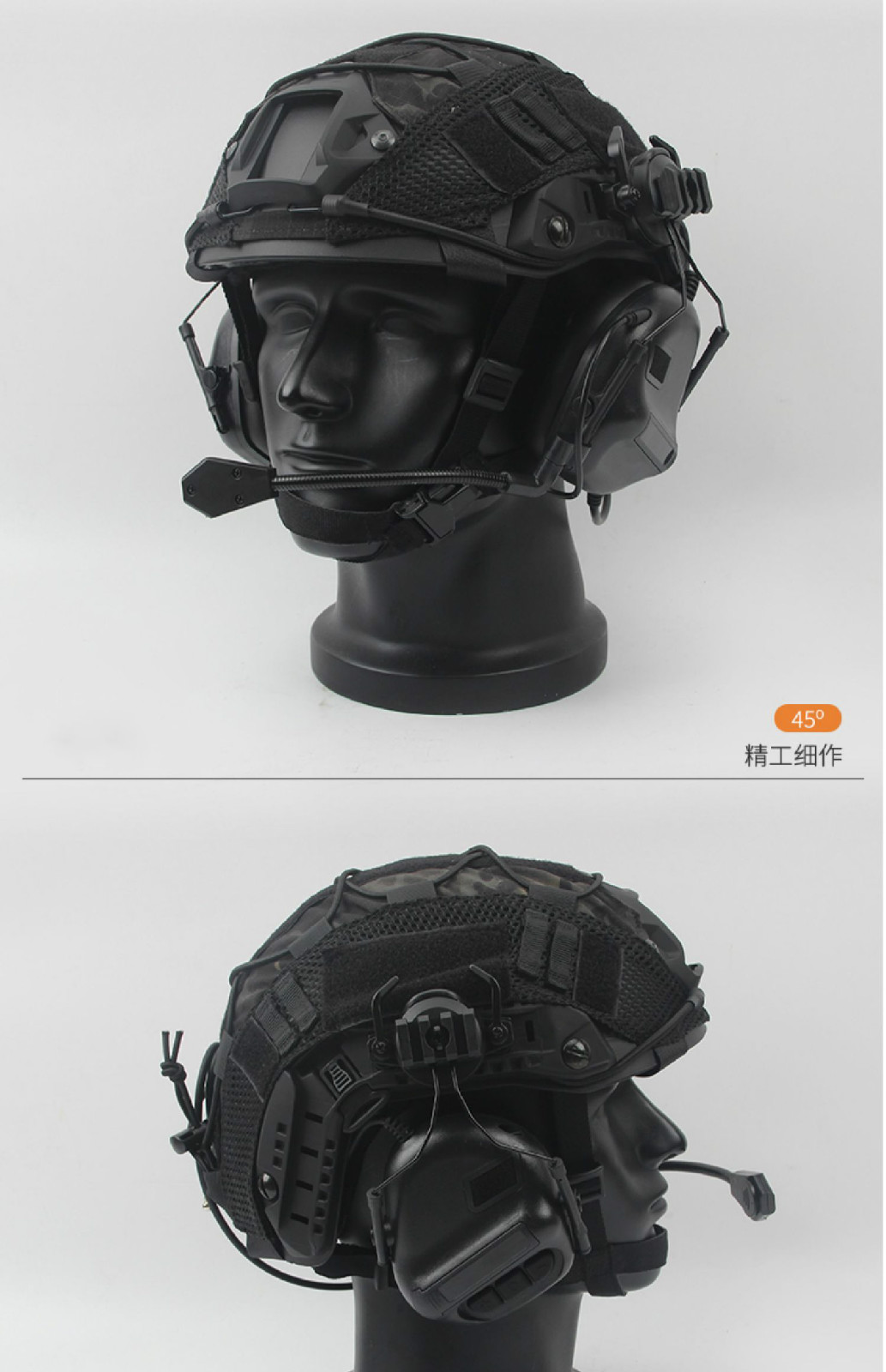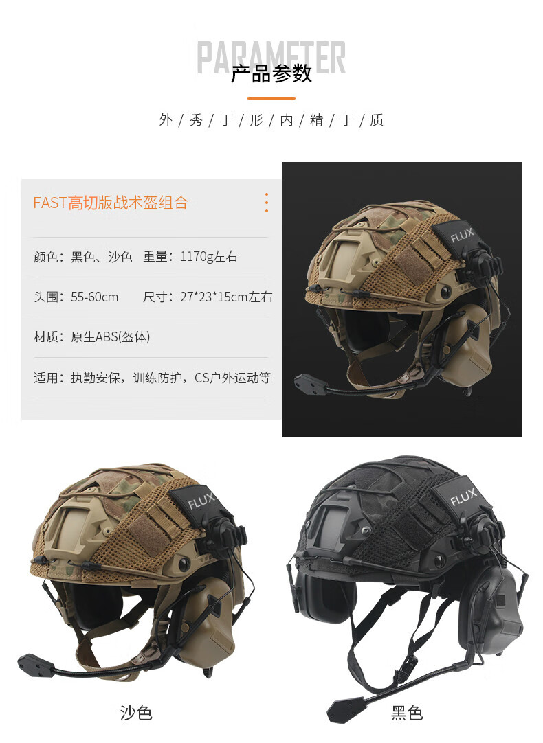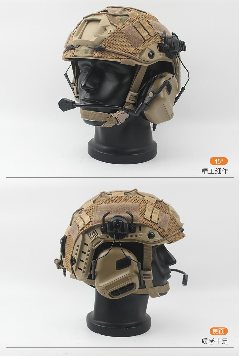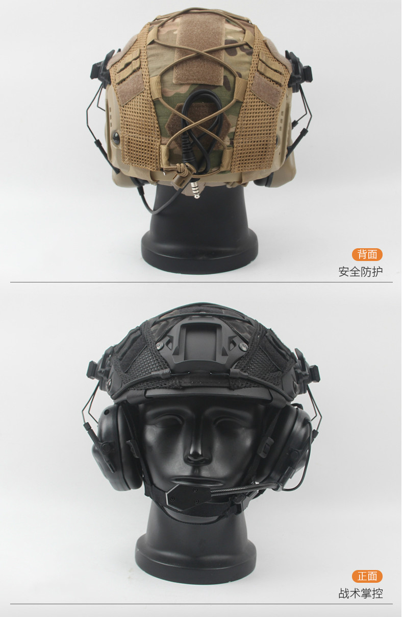 FAST PJ 高切盔通讯耳机耳麦套装军迷CS特种快速水际版战术头盔 黑色头盔+黑CP盔罩+通讯耳机