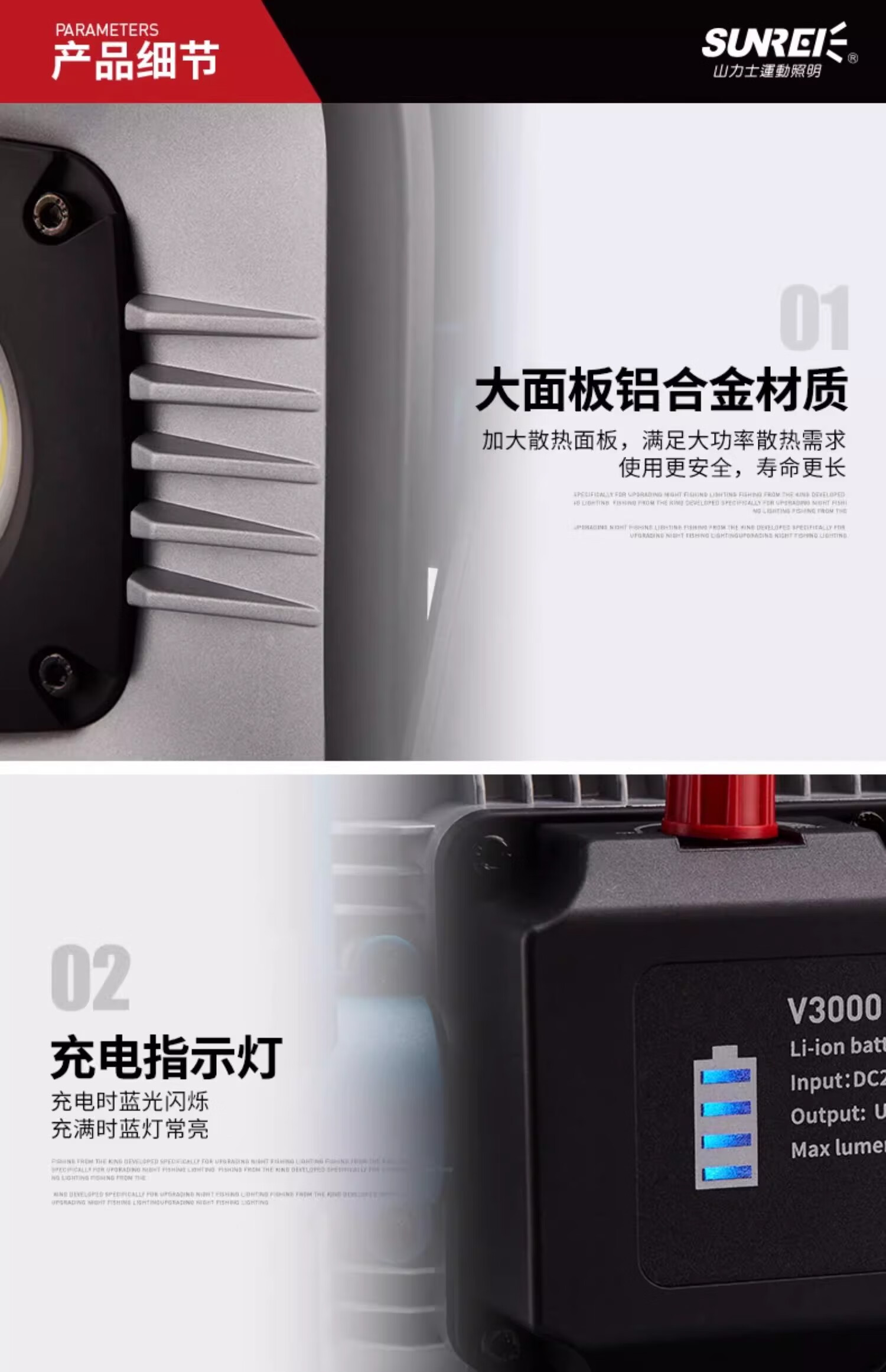 山力士多功能工作灯超亮强光家用应急照明灯移动摆摊露营 V3000pro