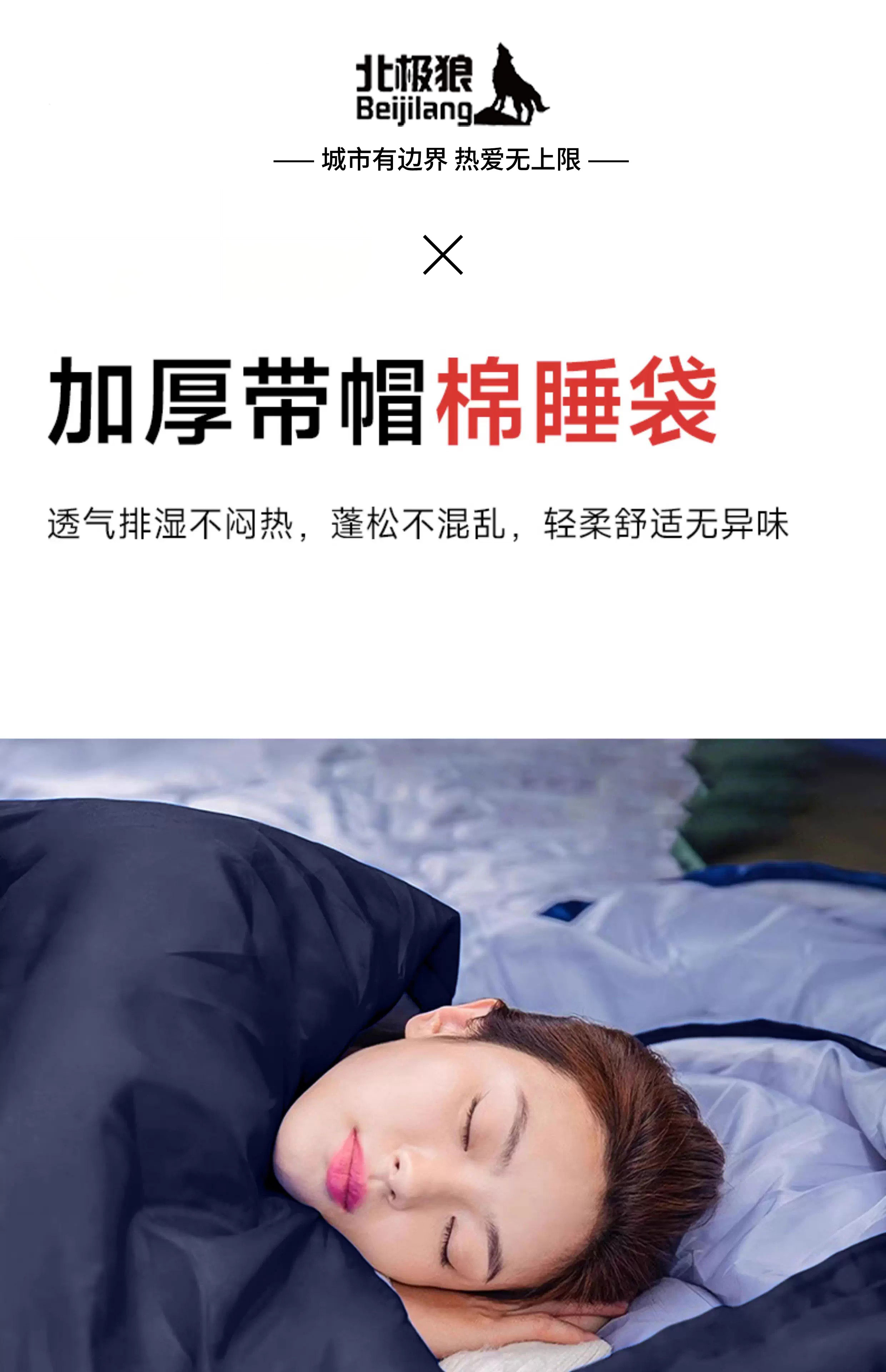 北极狼睡袋成人户外露营加厚保暖四季通用办公室午休信封式拼接隔脏睡袋 经典款【蓝色2.5KG】