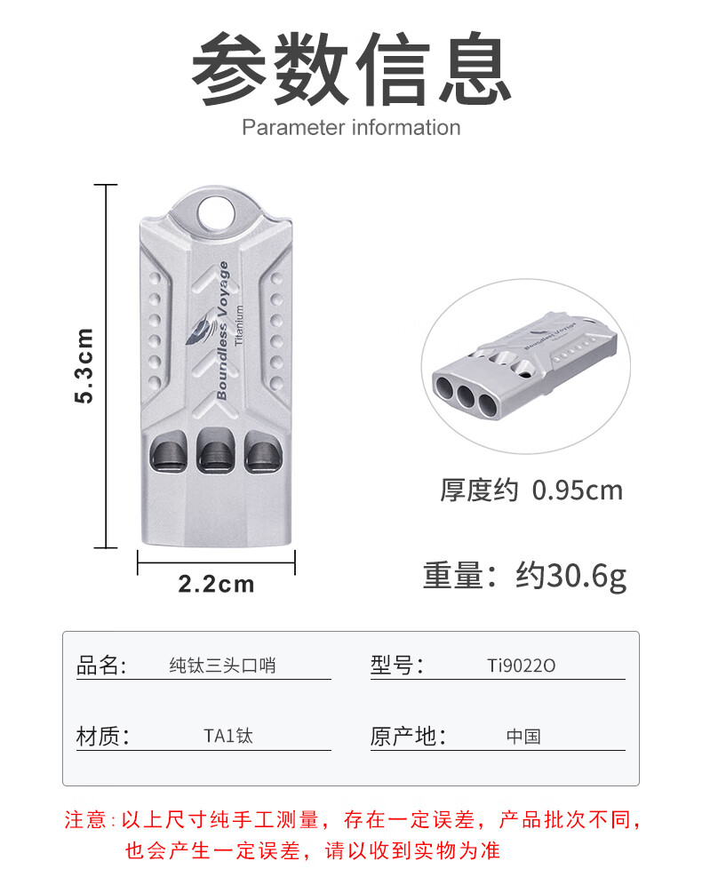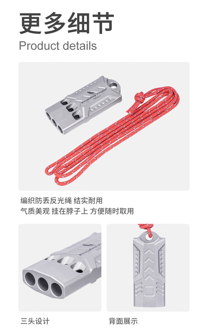 必唯纯钛户外求生口哨轻量便携露营生存野营地震大声挂绳钛哨响亮 Ti9022O(120分贝)