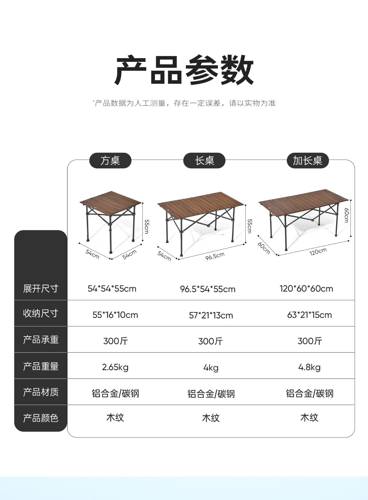 北方象户外折叠桌桌椅露营装备便携蛋卷桌铝合金车载野外餐摆摊折叠桌子 长52宽52高50 (外袋)