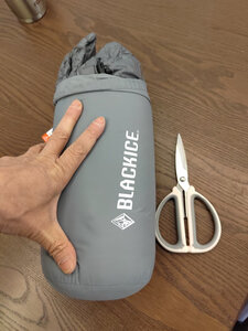 黑冰被子很薄很轻,鹅绒的充气量特别好,打开一会就蓬松起来,居家户外都特别好。暂时没发现跑绒,据说日常需要放大袋子里面,出门就小小一袋,完美