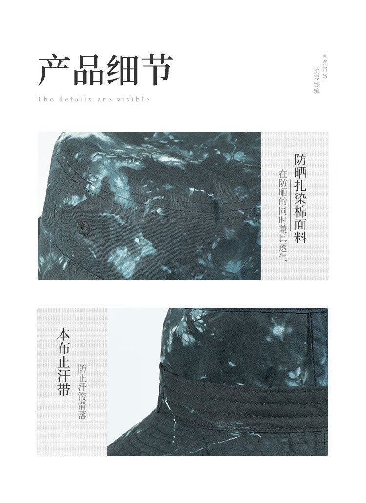 Naturehike挪客休闲扎染小檐渔夫帽 户外防晒防紫外线遮阳钓鱼登山遮阳帽子 靛青蓝