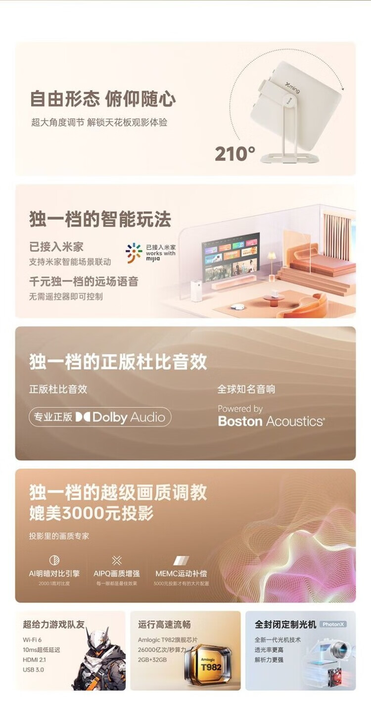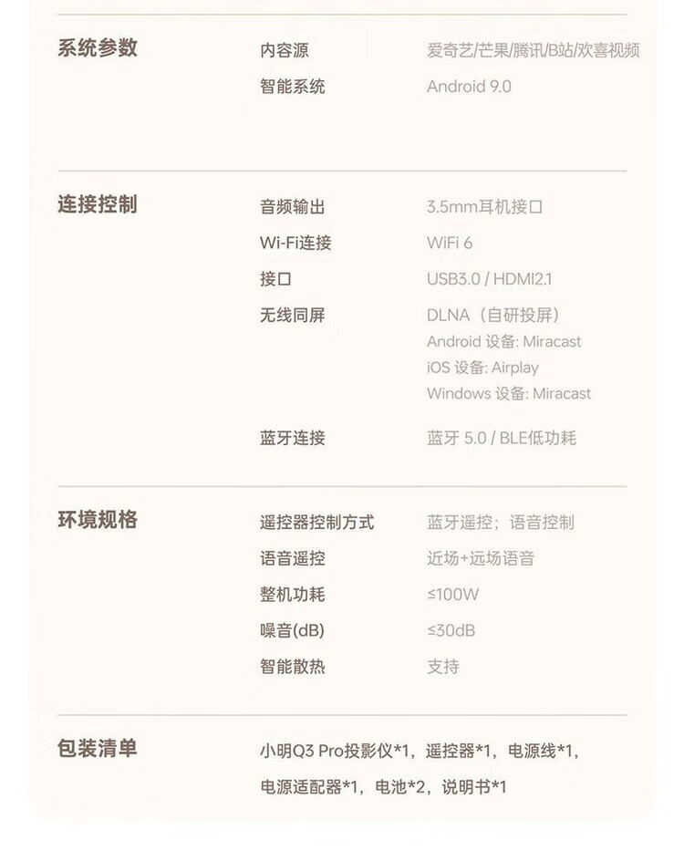 小明Q3 NEO投影仪智能投影仪家用超高清投影机家庭影院护眼卧室客厅小型宿舍学生 Q3 NEO