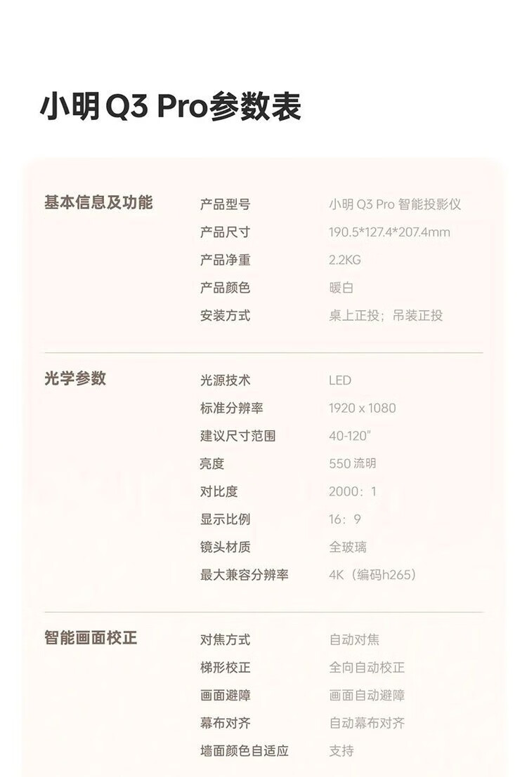小明小明Q3 Pro智能投影仪家用超高清投影机游戏家庭影院客厅卧室小型宿舍学生已接米家 单机Q3Pro
