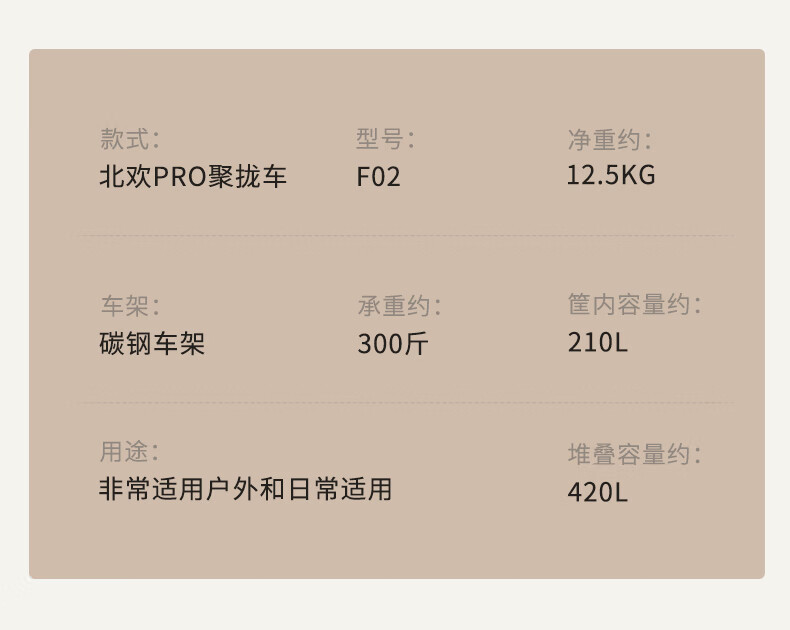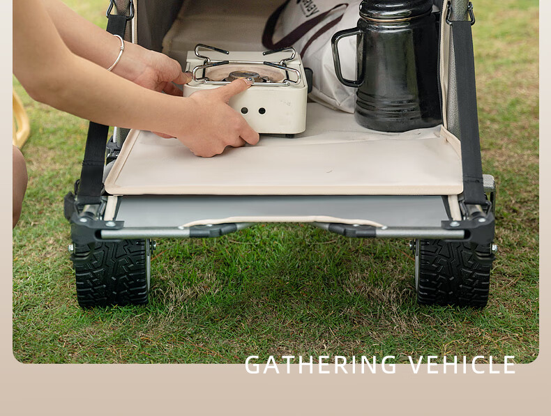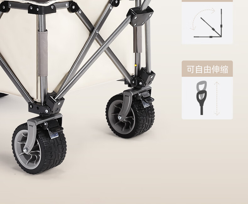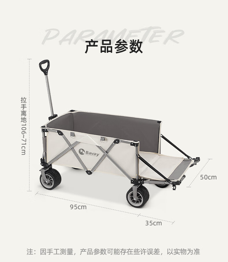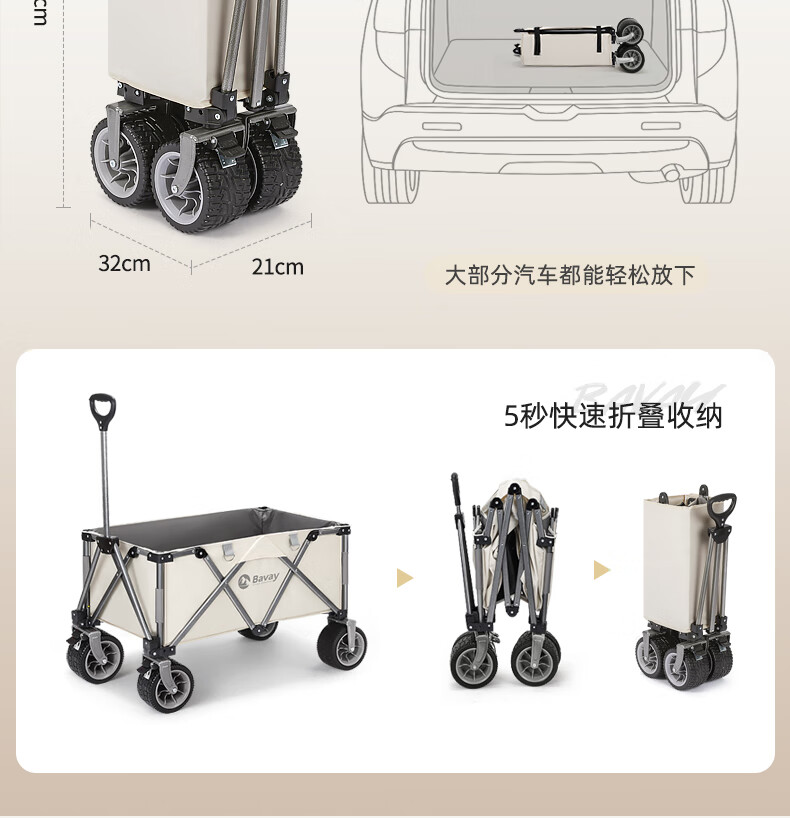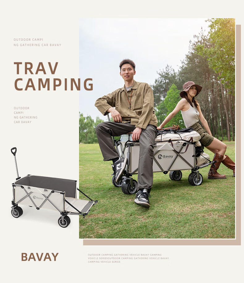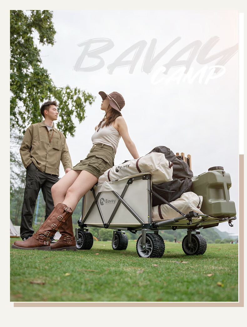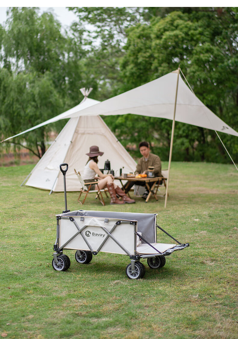 北欢bavay营地露营推车户外野餐便携pro折叠拉杆车野营手拉拖车F02 420L 米色pro+顶棚