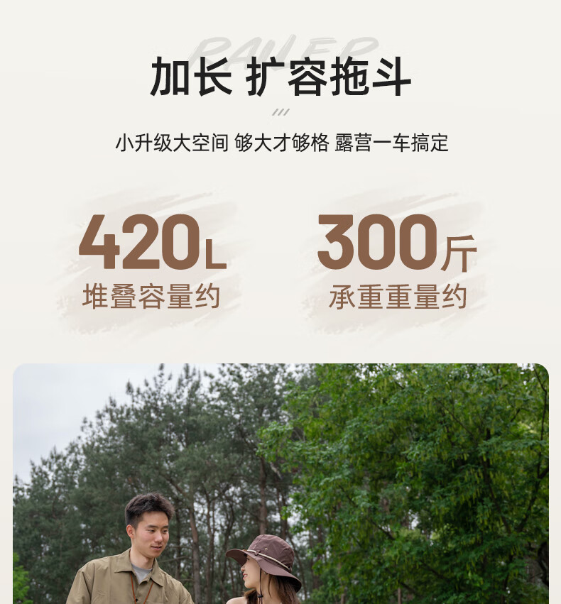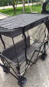 第一次入露营车,断断续续看了半年多,很多牌子,最后选择做入门级就选了北欢S01,与目前需求很契合,车车做工很结实,自重在承受范围内,除了露营,拉毛孩子也是很不错,配了推把,加了顶棚,完美~~