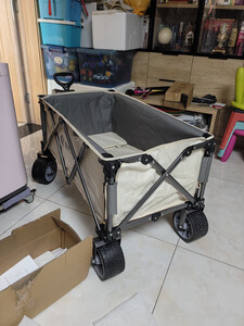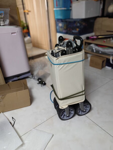 首先要说,这款车真的符合我家对露营车的要求。我要求尾部可扩展,媳妇要求有蓬市面上同时符合的产品,我只见到这一款。 之前关注山姆的有蓬车,尝试了一下,推起来灵活,拉起来特别扭。买这款时也有担心,毕竟没法尝试。等货到家后,仔细尝试了一下,真的很好拉。符合心理预期。 另外,车的设计真的很赞。车厢垫在收起时做车身聚拢绑带。拓展尾部设计了吊带、粘条、锁扣三重保障。即使在使用顶棚时锁扣无法使用。也可以通过粘条将车位收起。 配件也很丰富。车轱辘有专用的防尘套。车身展开下也有方形防尘套。感觉设计师真的是实际露营后考虑到各种场景设计的产品。 最后说产品质量用料。也都很上乘。光一个轱辘就很沉。刹车系统做的也够精致。当然,带来问题是车身偏重。