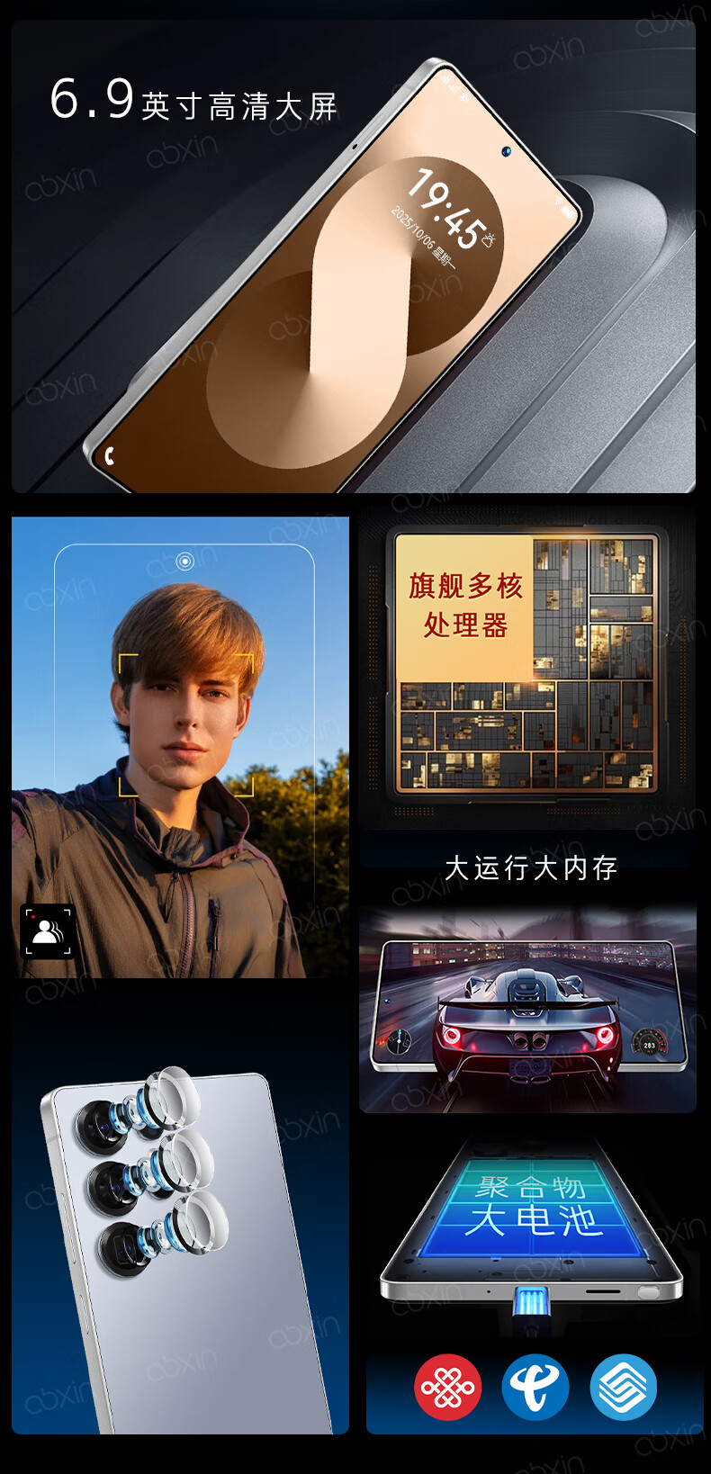 欧博信(OBXIN)原装全新品6.9大屏C25全网通双卡大内存5G百元智能手机学生电话机 钛蓝色(高配版带手写笔) 256G 礼包套餐