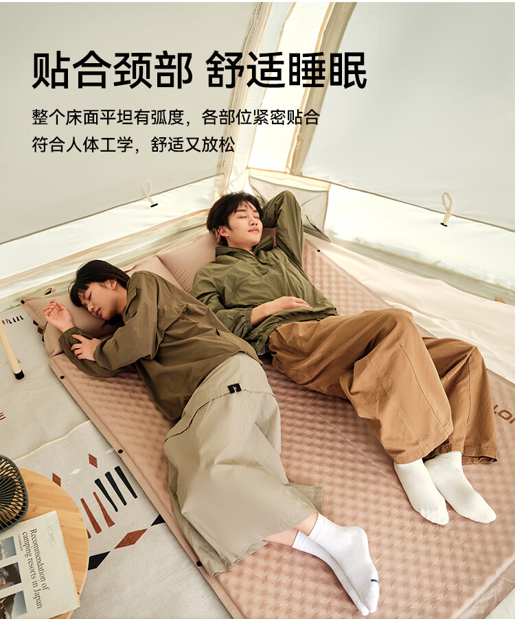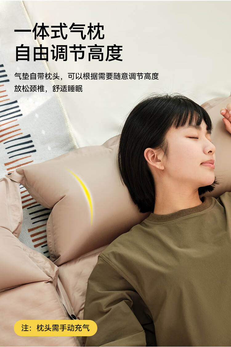 原始人 充气床垫户外露营气垫床野营自动充气床睡垫打地铺垫子 【浅卡其】3cm自动充气垫-三人