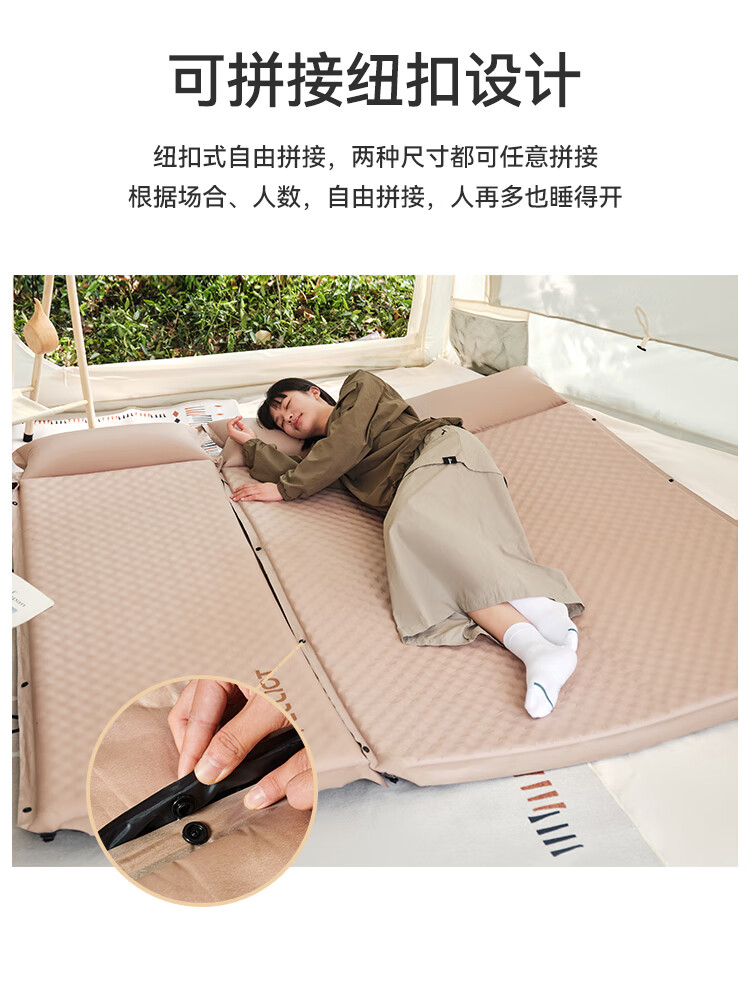 夏天到了,经常出去旅游、给家人购买的一款露营帐篷⛺️内的自充气睡垫。 看了很多品牌、选定这款“伯希和”。可拼接睡垫。 到货包装完好、外包装袋颜色漂亮、很喜欢、不大、容易携带、无异味、容易展开、收!透气效果好、适用露营帐篷、也适合家庭地上临时地铺…适合3人。满意!👍还会光顾。 物流相当给力!赞!