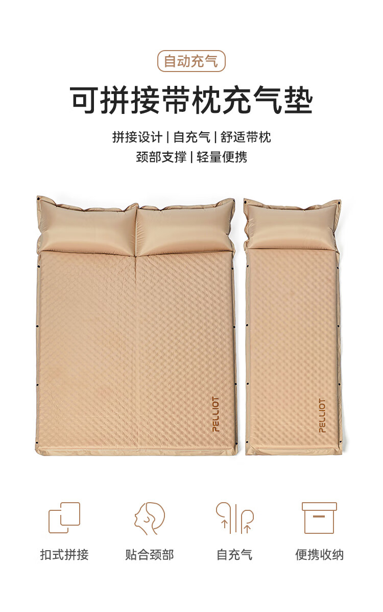 伯希和(Pelliot)充气床垫户外自动充气床垫防潮垫帐篷垫子加厚16202838单人6CM