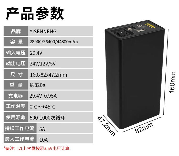 YI SEN NENG亿森能锂电池24V大容量12v5v多功能18650电芯小体积大功率可充电 24v12v5v36400mah