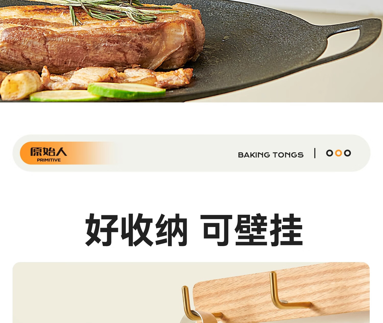 原始人 户外烧烤夹露营野餐野炊厨房家用不锈钢食品牛排烤肉夹子工具 韩式烤夹