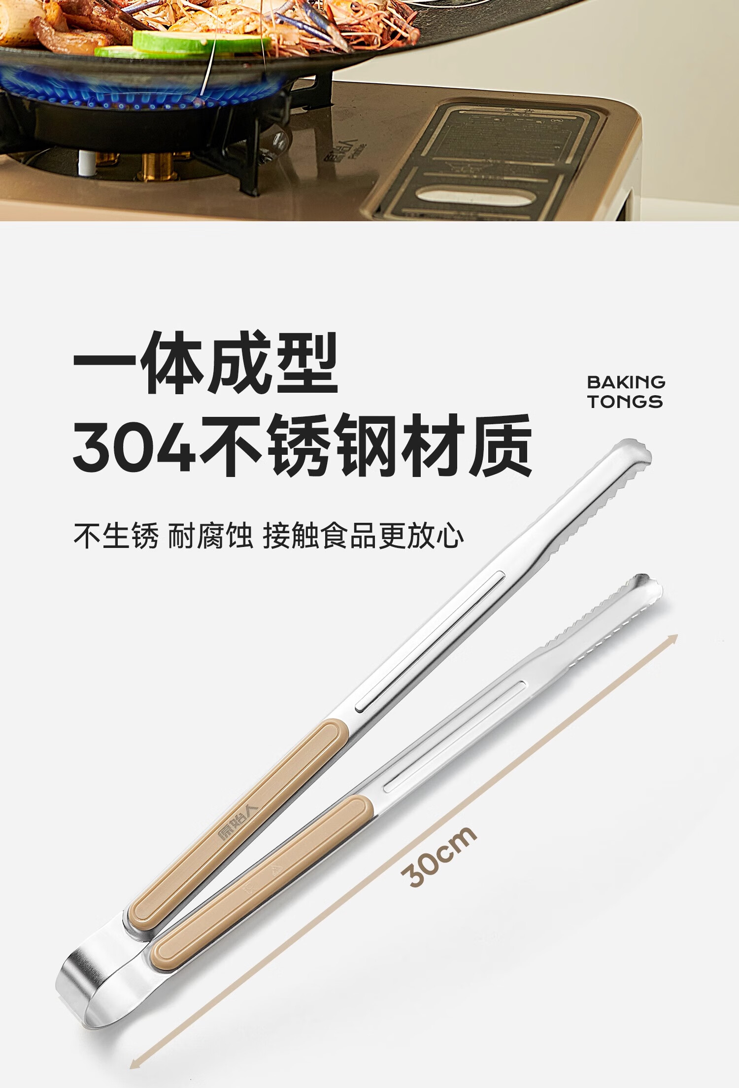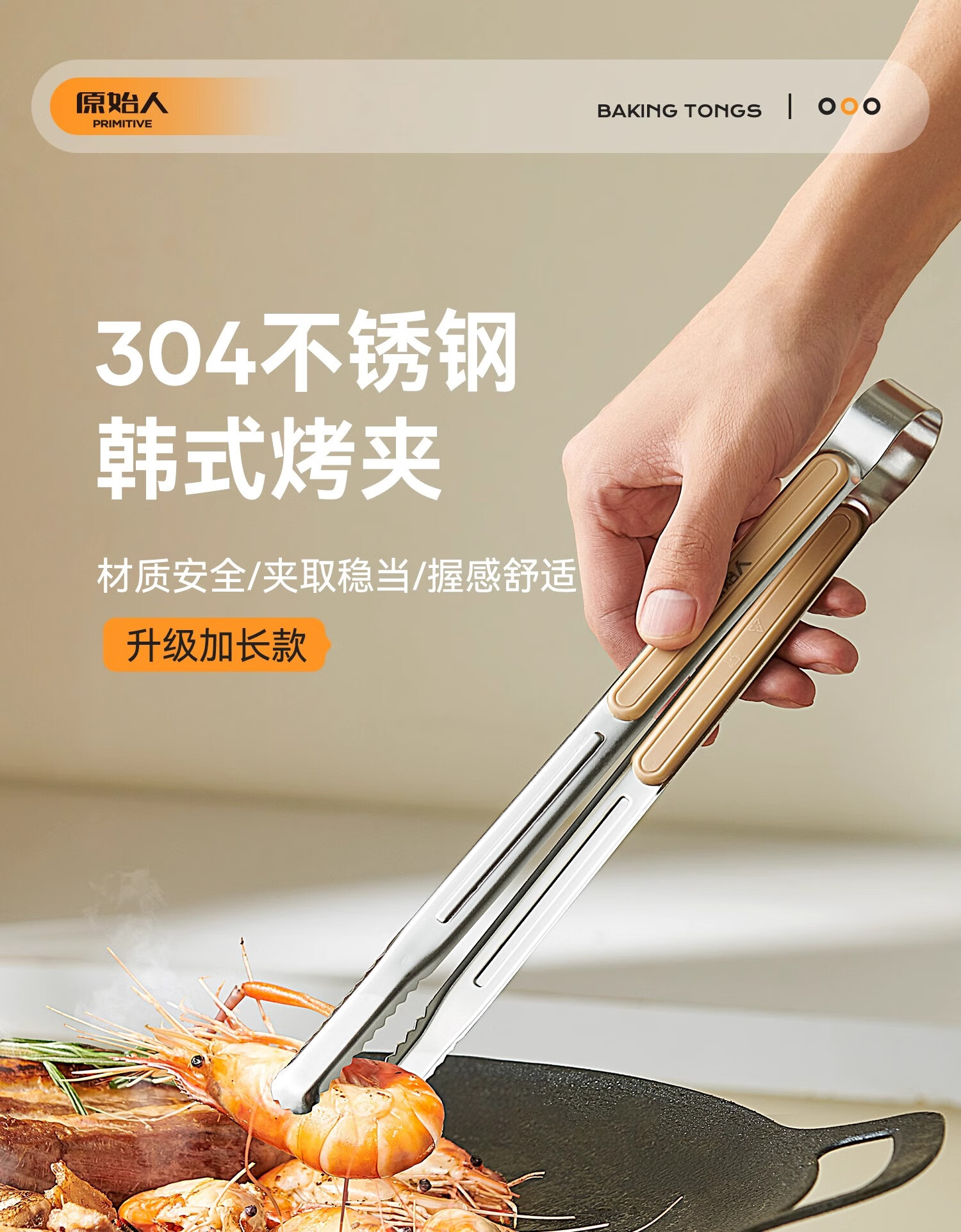 原始人304不锈钢烤肉夹子食品夹厨房牛排食物烤箱烧烤小韩式烤夹 304不锈钢韩式烤夹