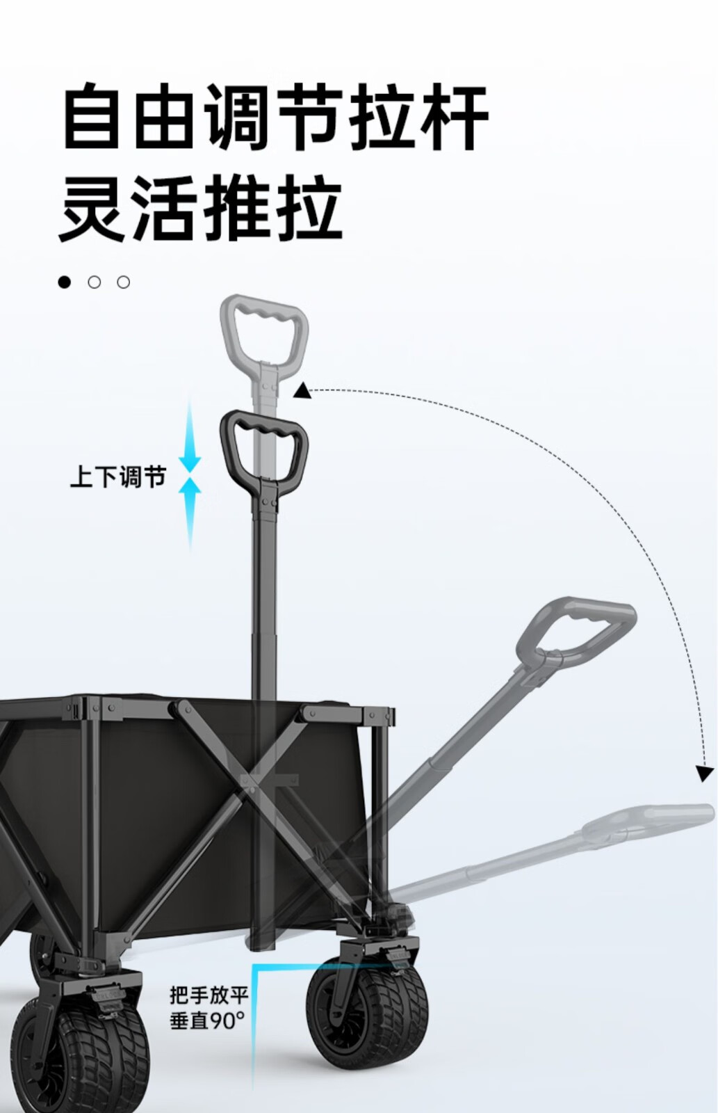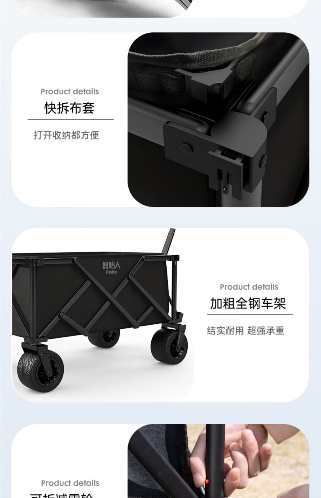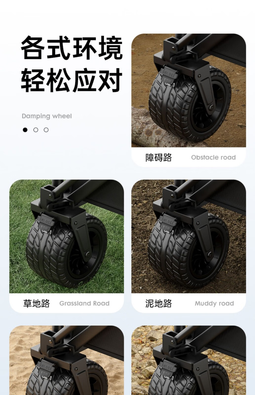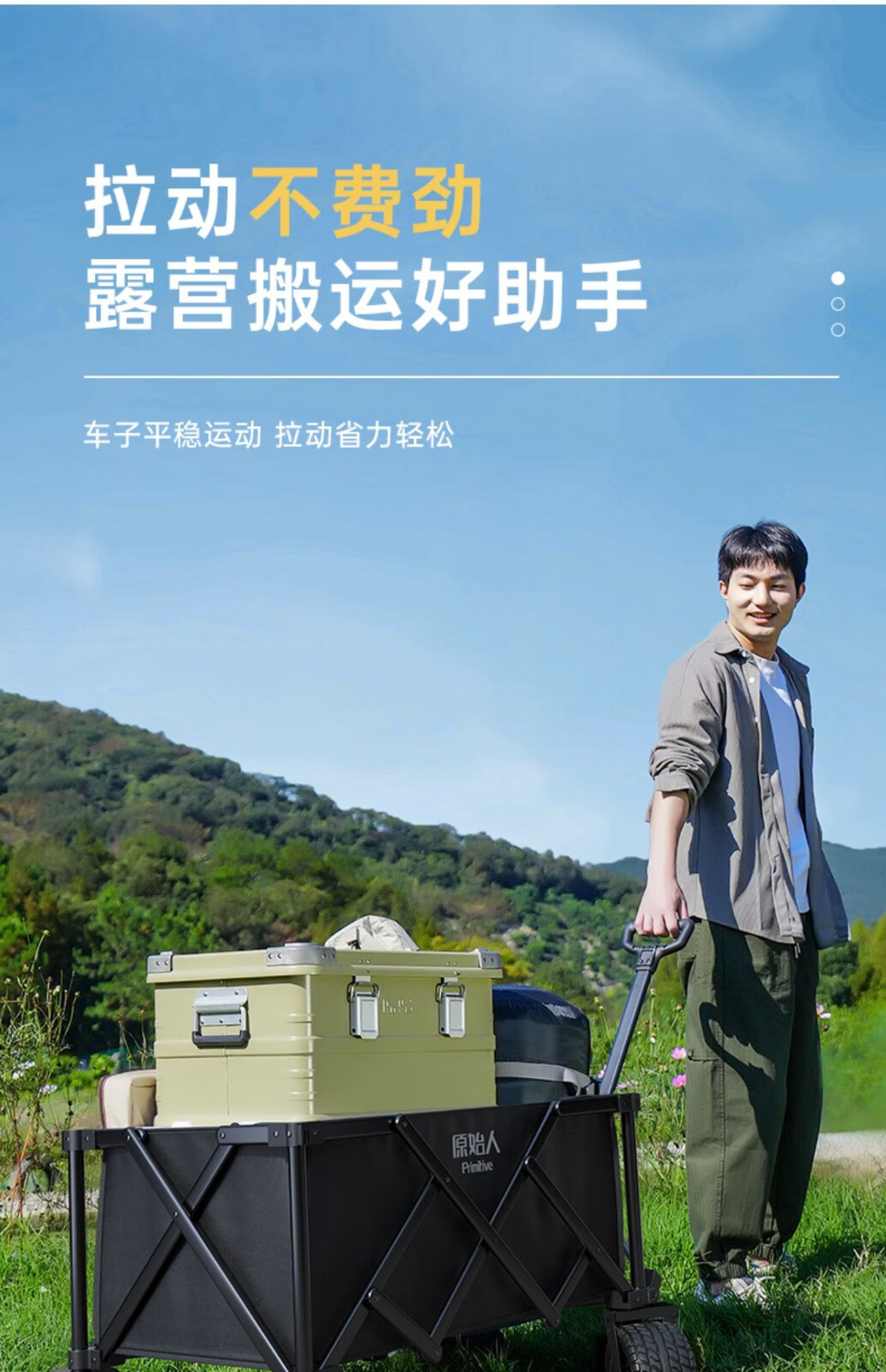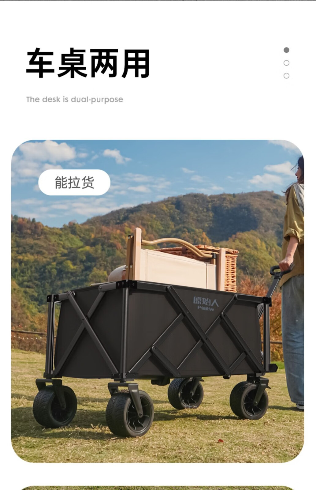 原始人露营推车户外营地拖车超大可折叠手推野餐野营手拉车小拉车 减震轮曜黑-轮宽10cm/轮子可拆卸