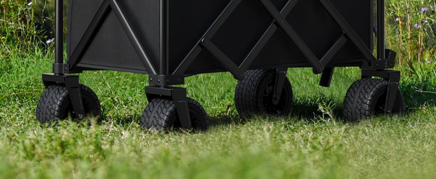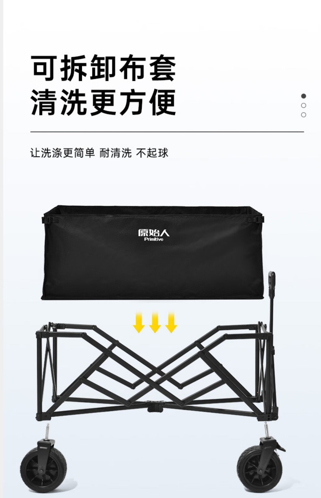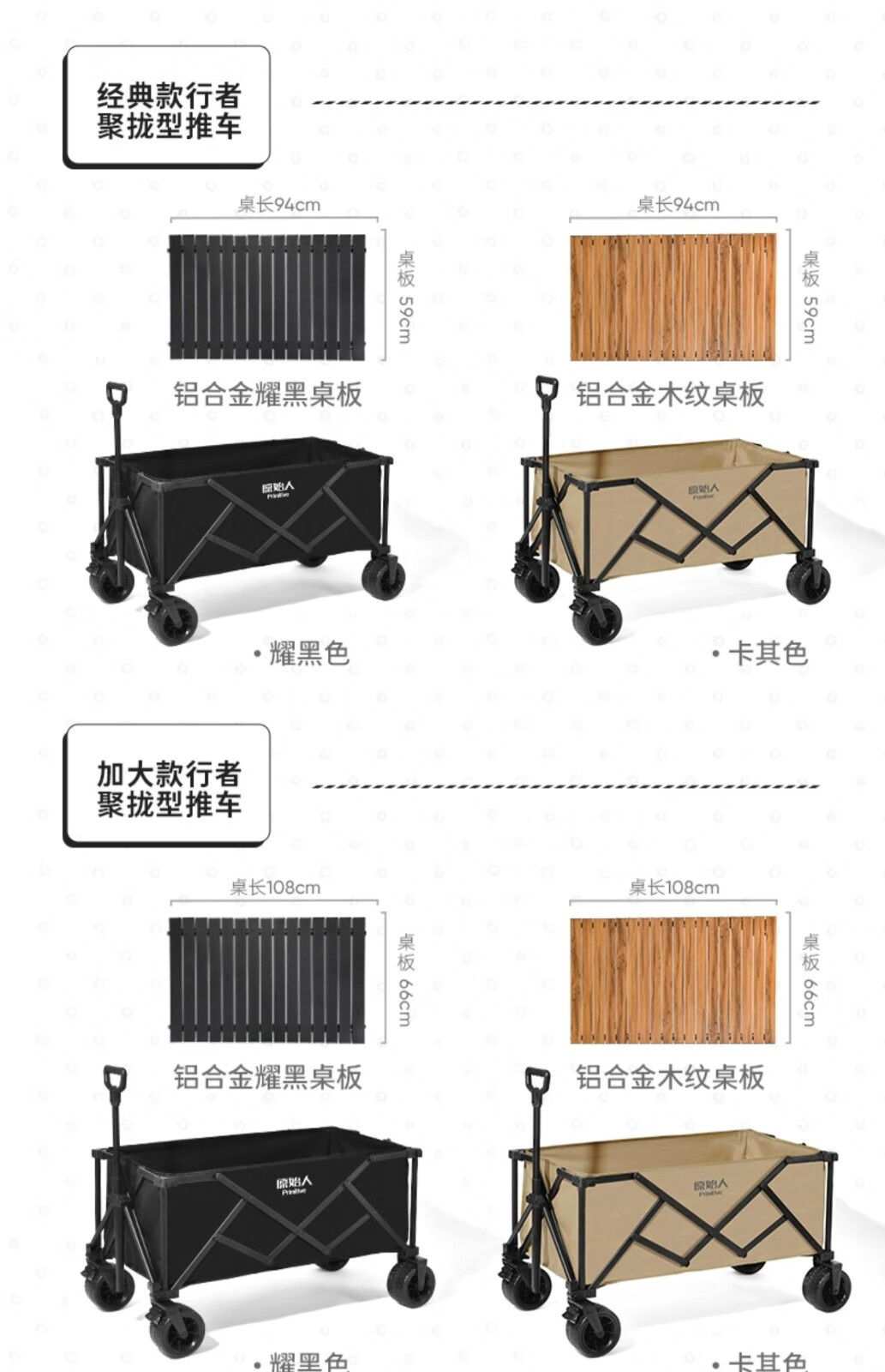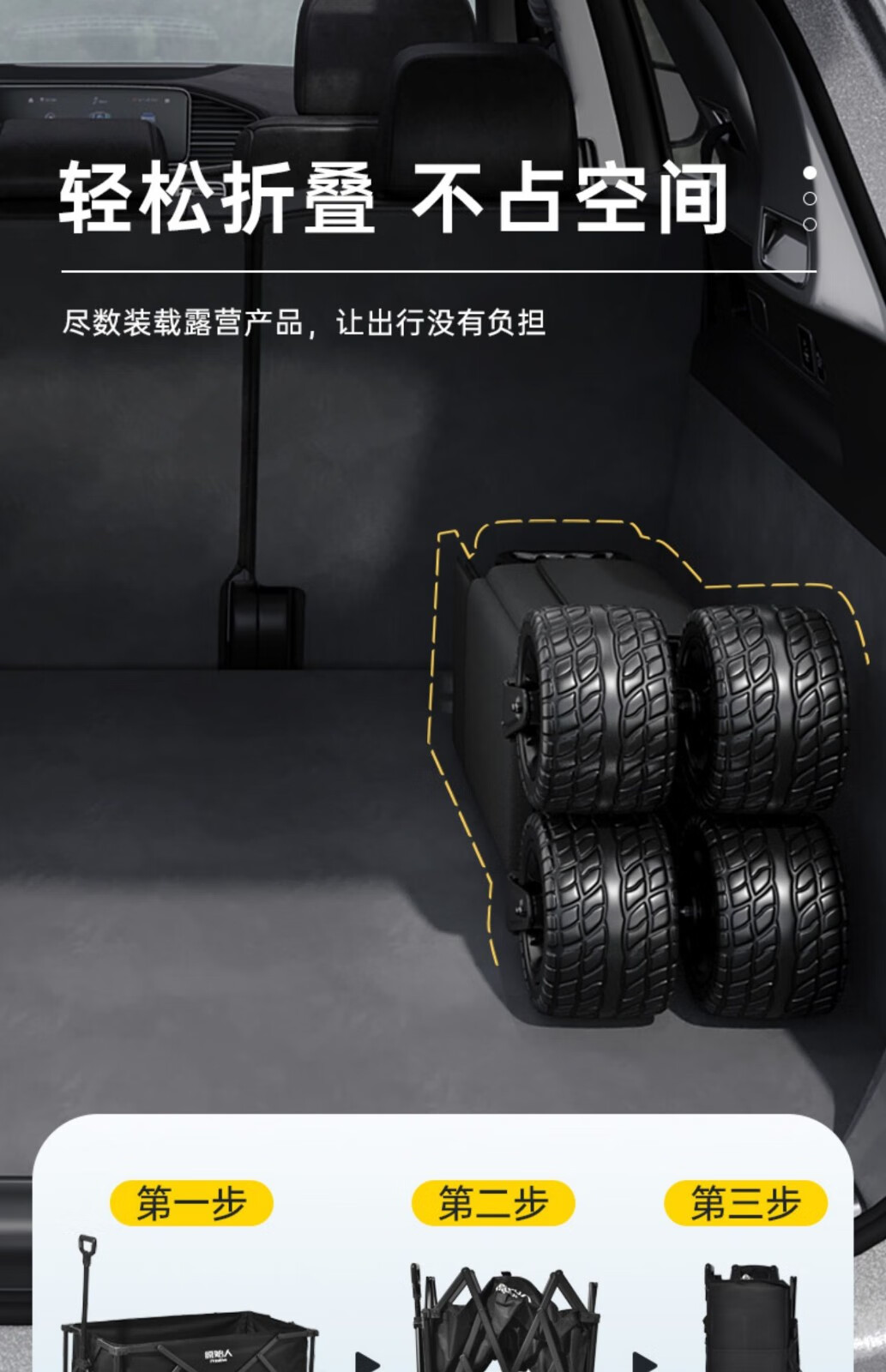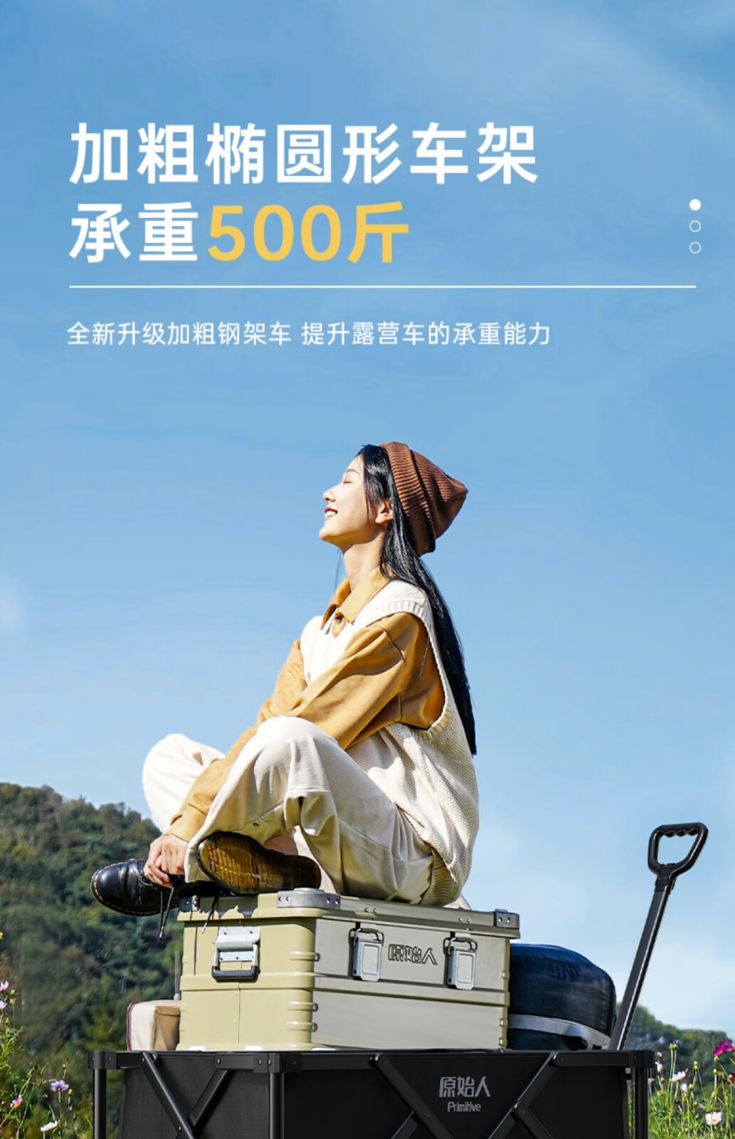 原始人露营推车户外营地拖车超大可折叠手推野餐野营手拉车小拉车 减震轮曜黑-轮宽10cm/轮子可拆卸