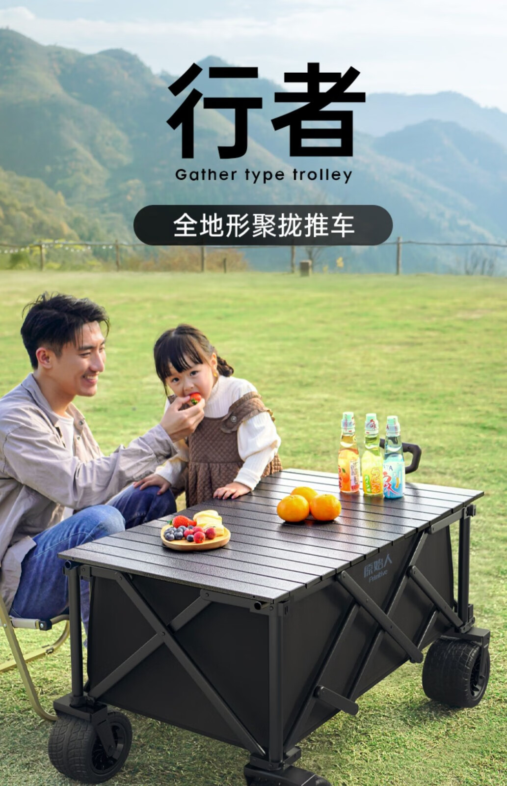 疆屿露营车野营户外折叠手推车野餐摆摊拖斗车儿童可躺聚拢营地车