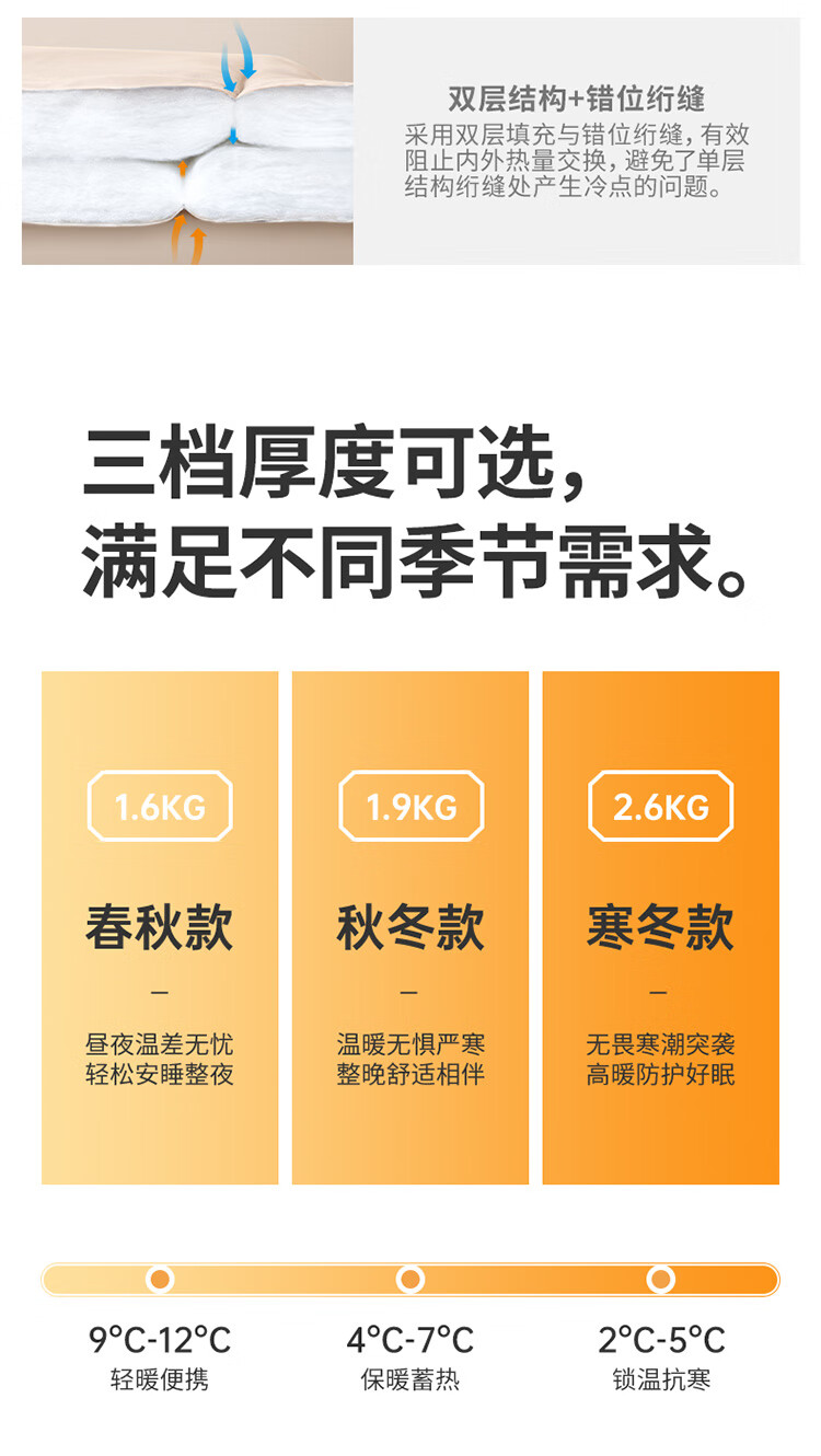 体积重量:收起来以后相对还是有点大,不过展开后体积摆在那,总之买一个压缩袋再装一下就行了。 产品材质:材质亲肤舒适。 保暖效果:很好。 舒适程度:很舒服,轻、暖,做工也不错,拉链顺滑,值得购买。