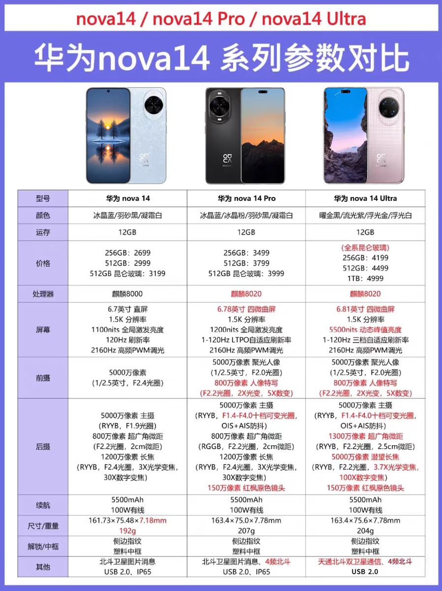 华为(HUAWEI) nova14全网通5G手机麒麟8000处理器鸿蒙系统北斗卫星NFC红外线 羽砂黑 12+512GB 单机+原装快充+店保一年