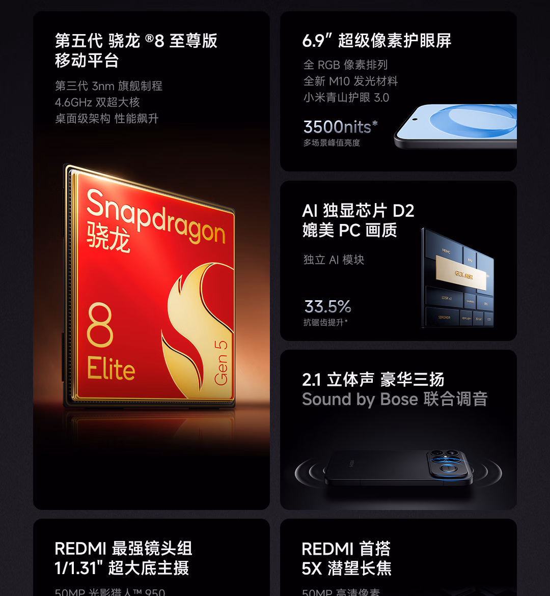 小米(MI)REDMI K90 Pro Max 第五代骁龙8至尊版 7560mAh大电池 青山护眼 红米新品 5G手机 至高24期 免息 黑色 12GB+256GB 【官方标配】赠:季度碎屏险+选好礼