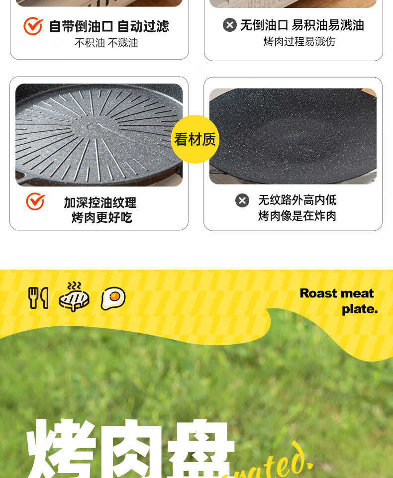 尚烤佳(Suncojia)不粘煎烤盘 烤肉盘 户外烧烤盘 韩式不粘煎盘 卡式炉锅具 不粘铝烤盘