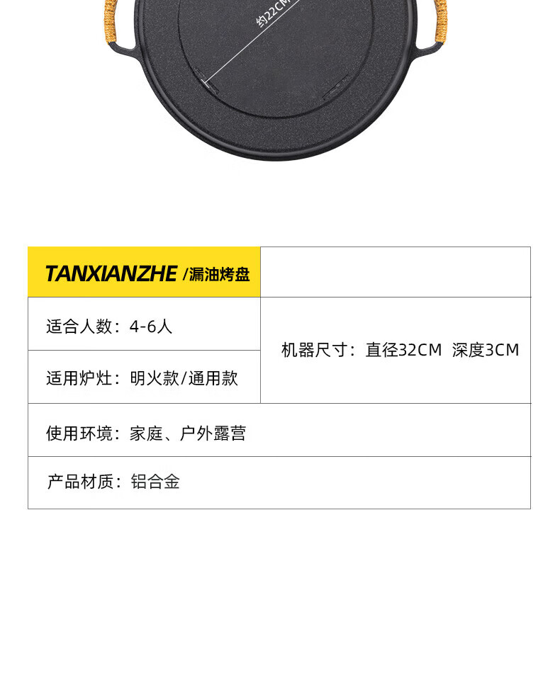 探险者(TAN XIAN ZHE)户外炉具卡式炉烧烤盘双用便携烤盘加厚电火双用烤盘露营家用野餐 双用烤盘【收纳袋+麻绳】+卡式炉