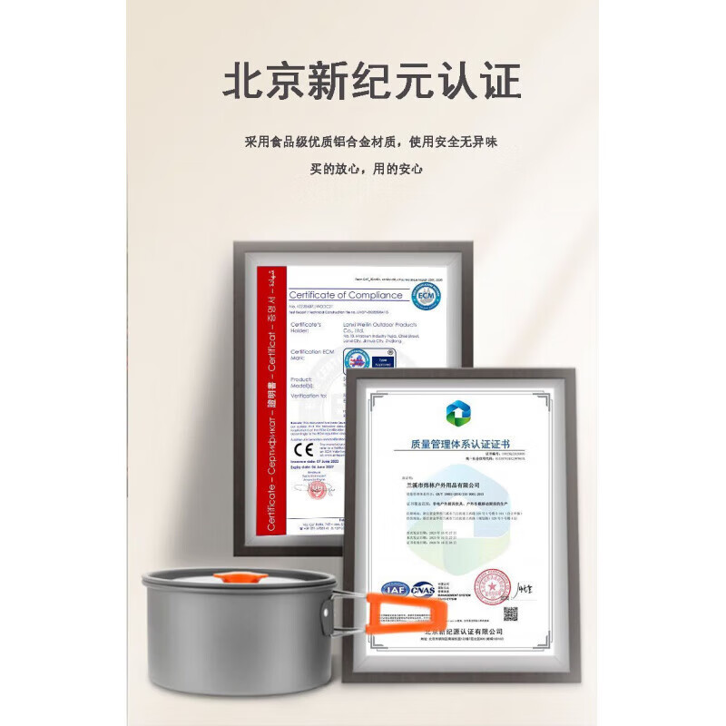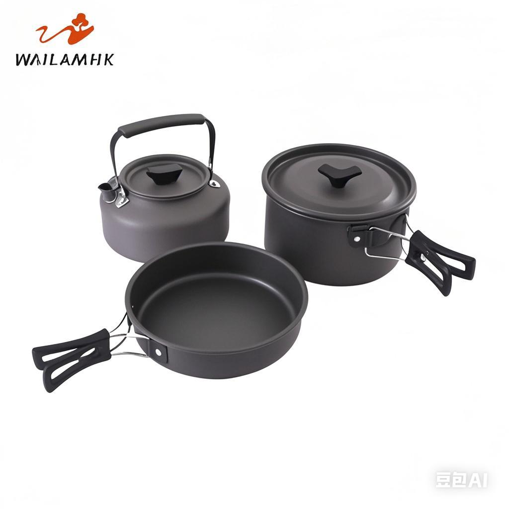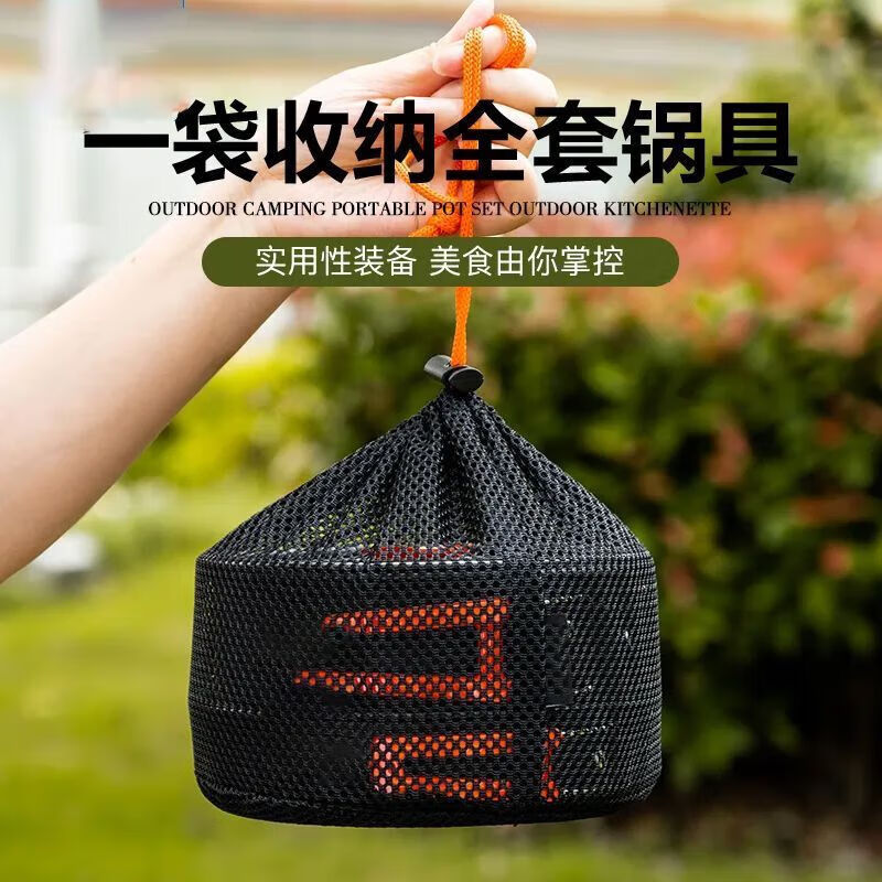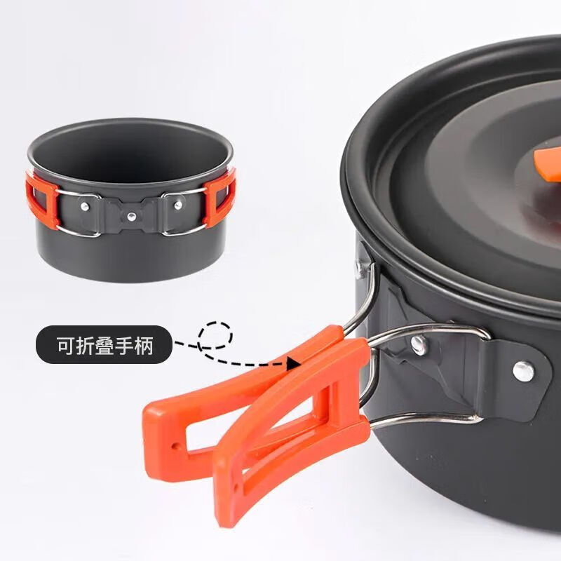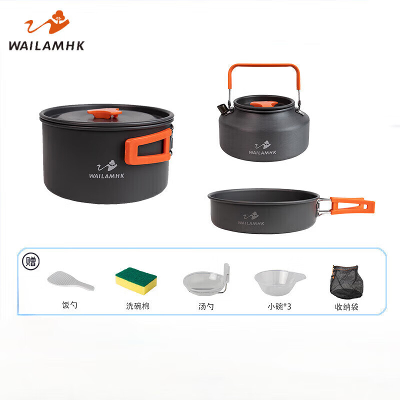 WAILAMHK户外锅具烧水壶炊具套锅露营便携式野餐锅煎锅围炉煮茶 301水壶套锅橙色【中煎锅+中煮锅+中水壶】