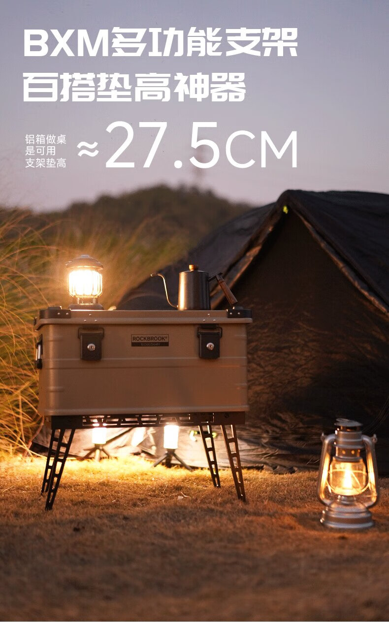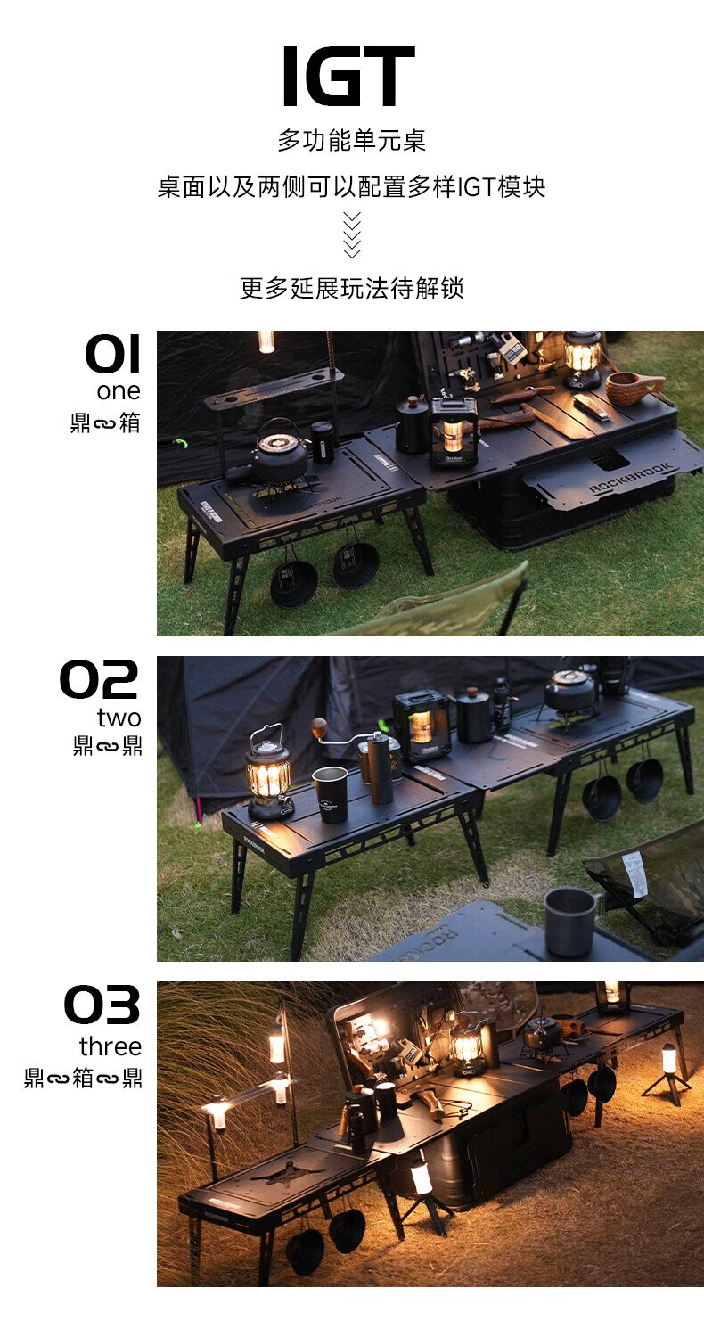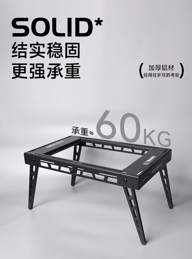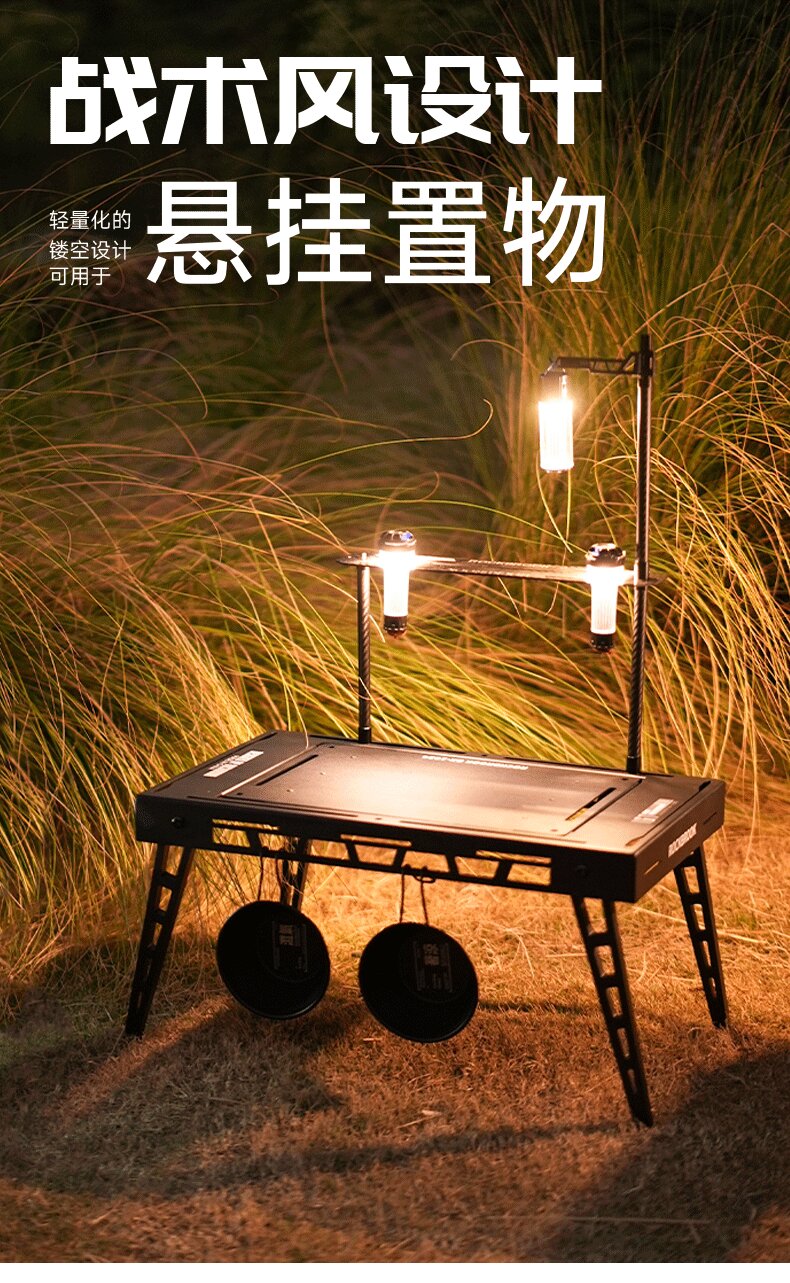 ROCKBROOK鹿布战术桌户外铝合金折叠桌轻量露营桌可调节升降igt桌扩展灯架 鼎 55.5*31.5*27.5