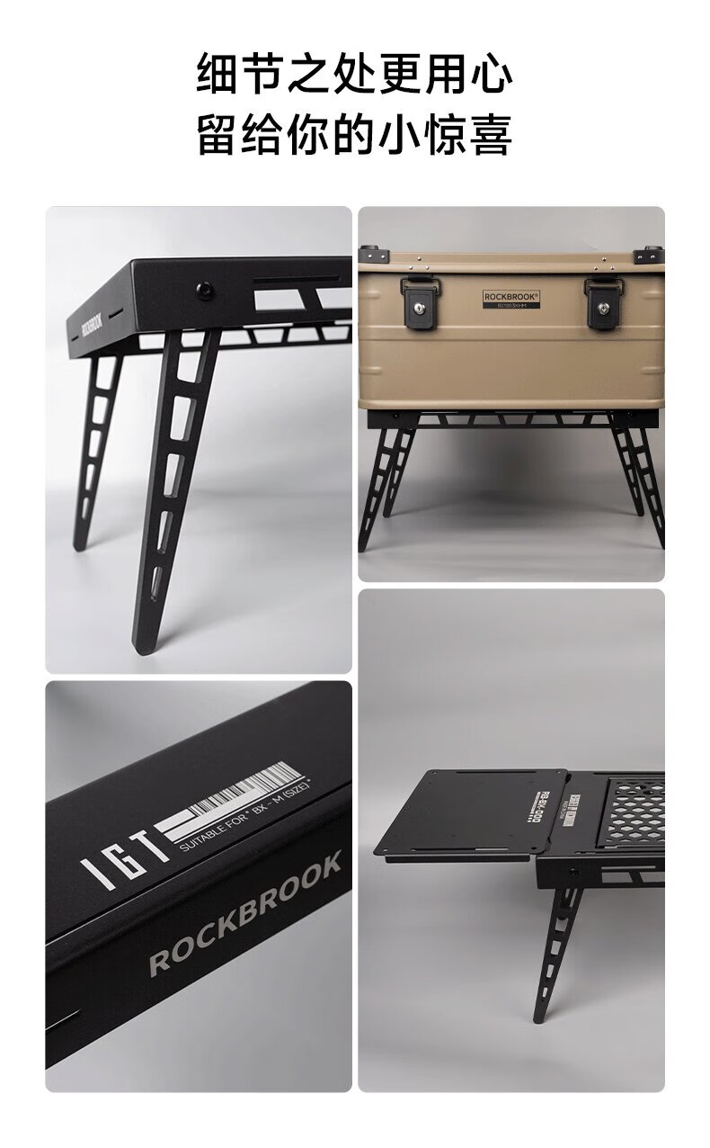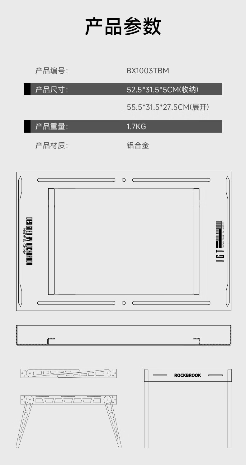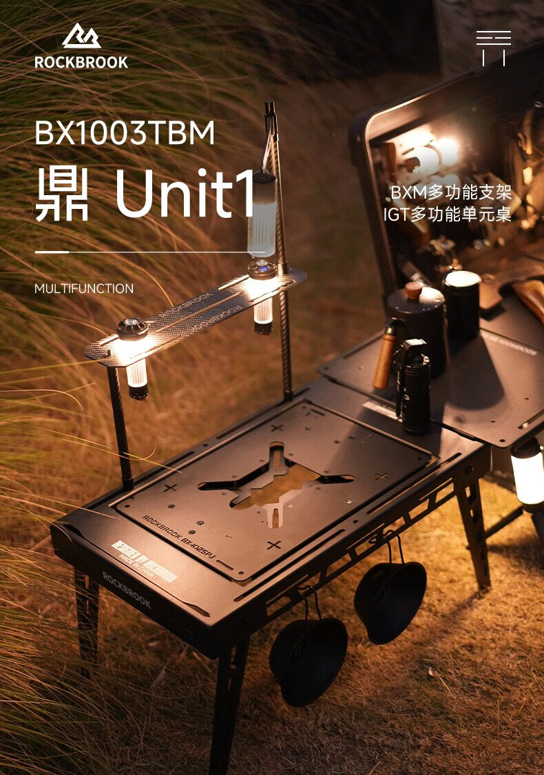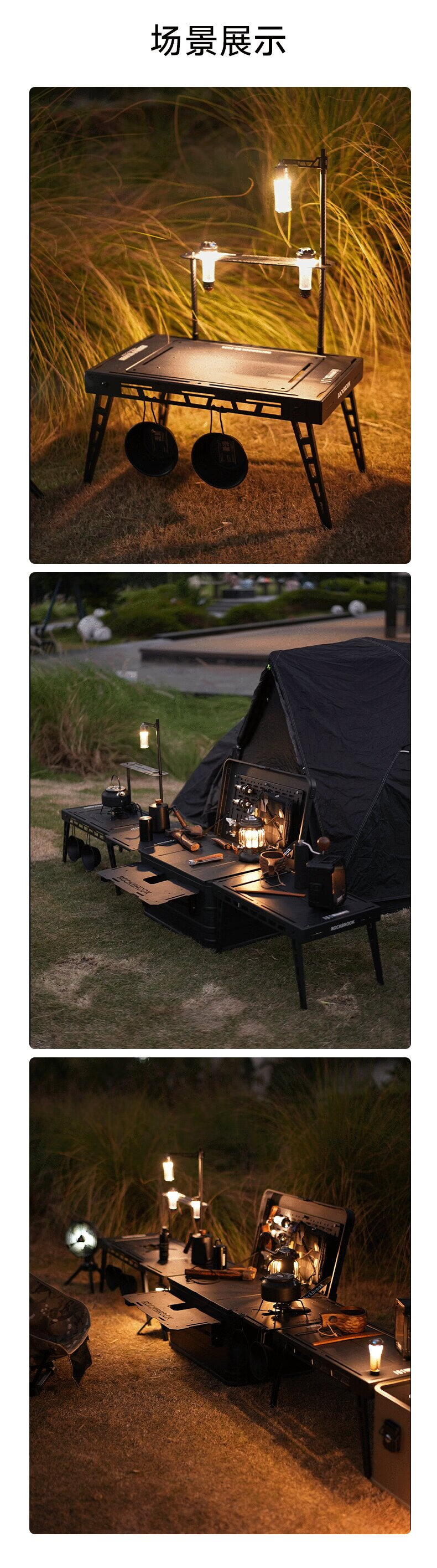 ROCKBROOK鹿布战术桌户外铝合金折叠桌轻量露营桌可调节升降igt桌扩展灯架 鼎 55.5*31.5*27.5