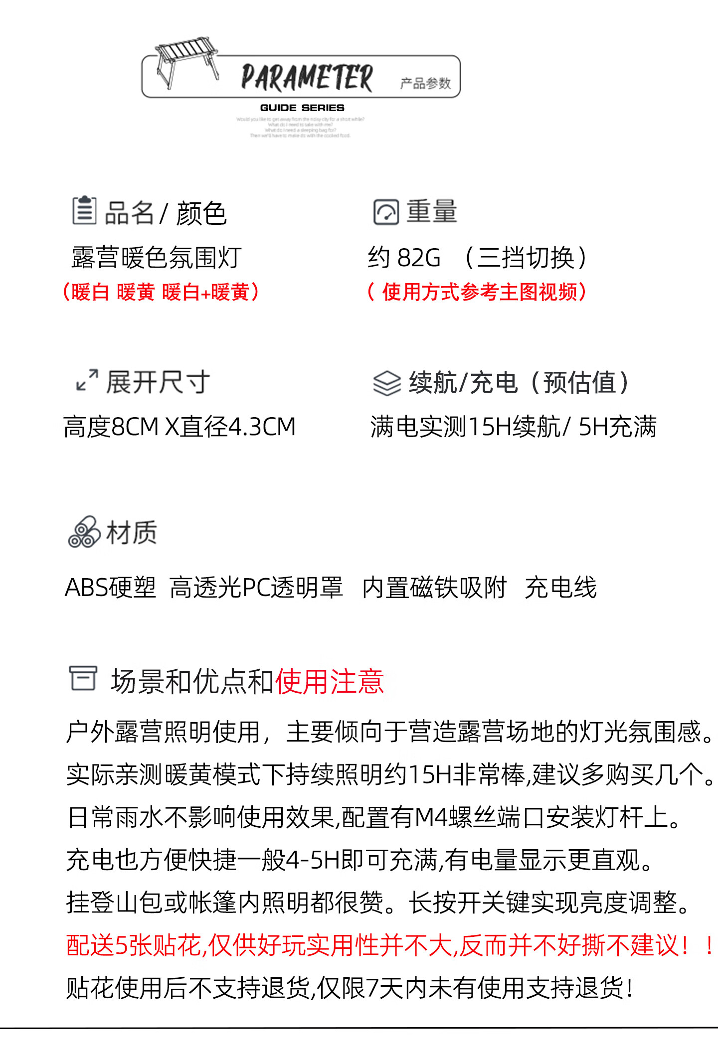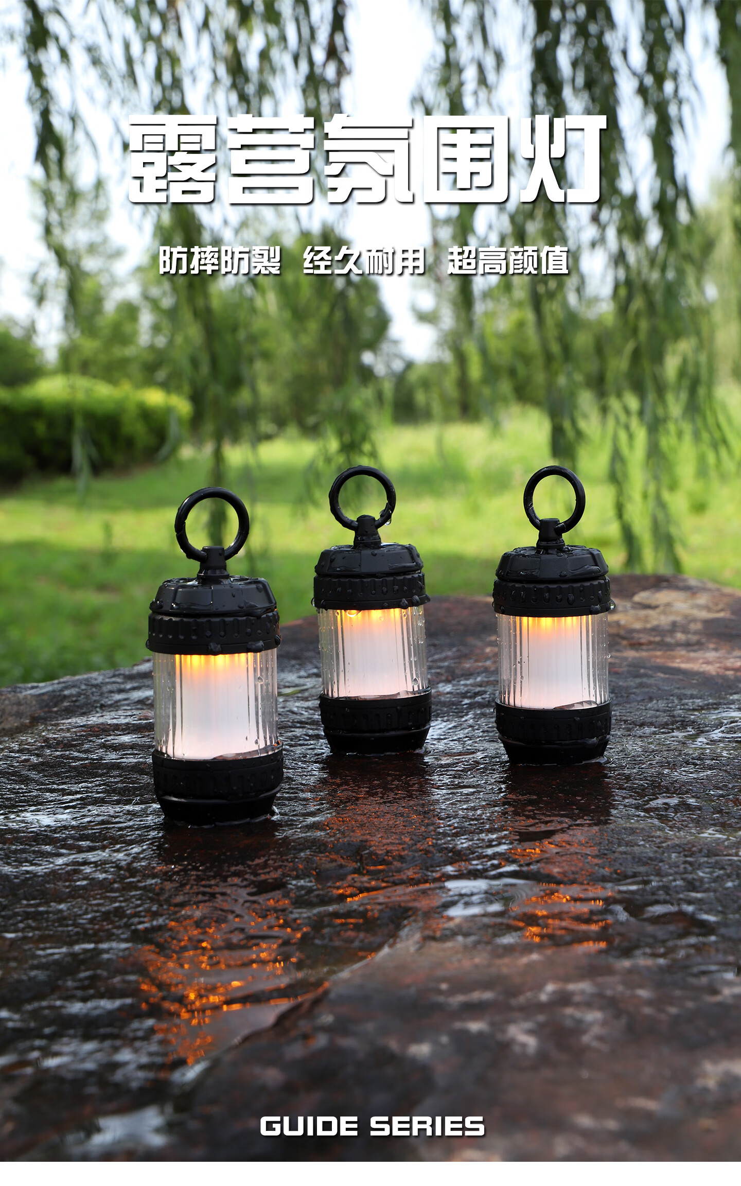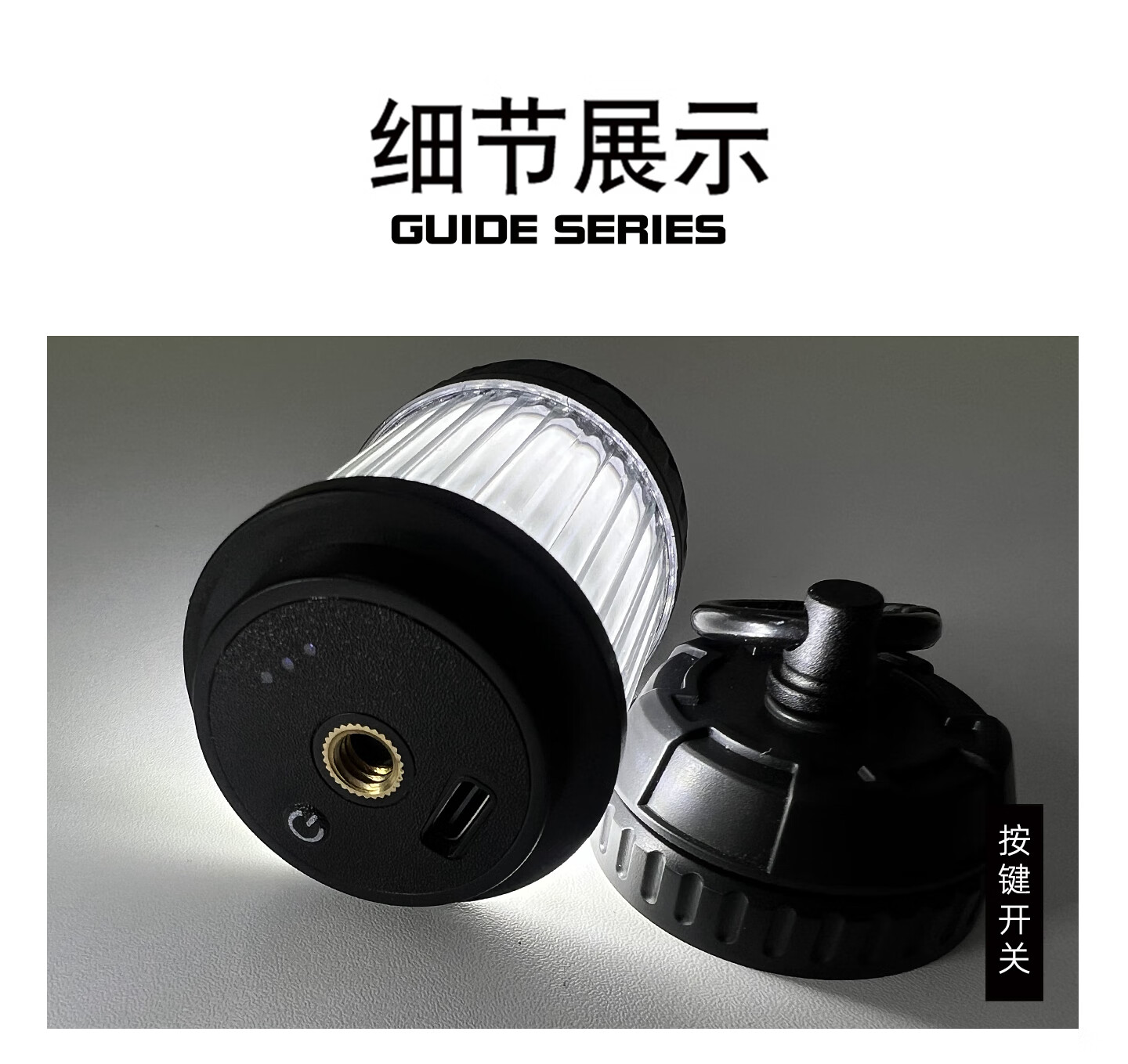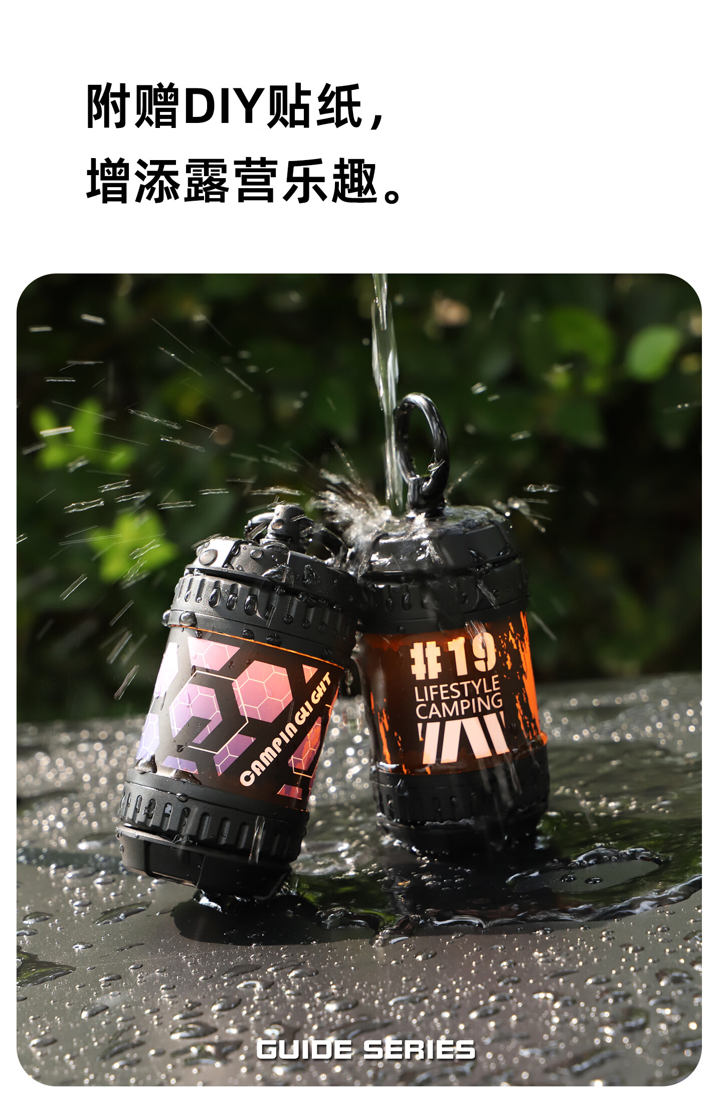 Guide Series户外迷你型很有颜值好玩的氛围露营灯照明灯 GS-306 迷你露营灯 (送5张贴花)--黑色