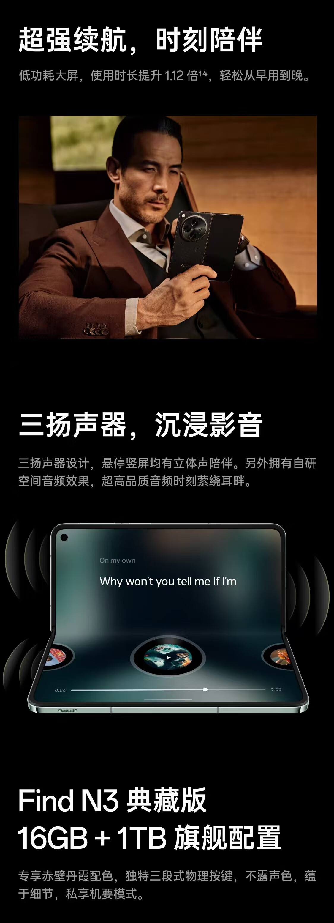 OPPO Find N3第二代骁龙8国密认证安全芯片 FindN3 典藏版 赤壁丹霞 16GB+1TB 单机+电子保卡已注册+店保一年