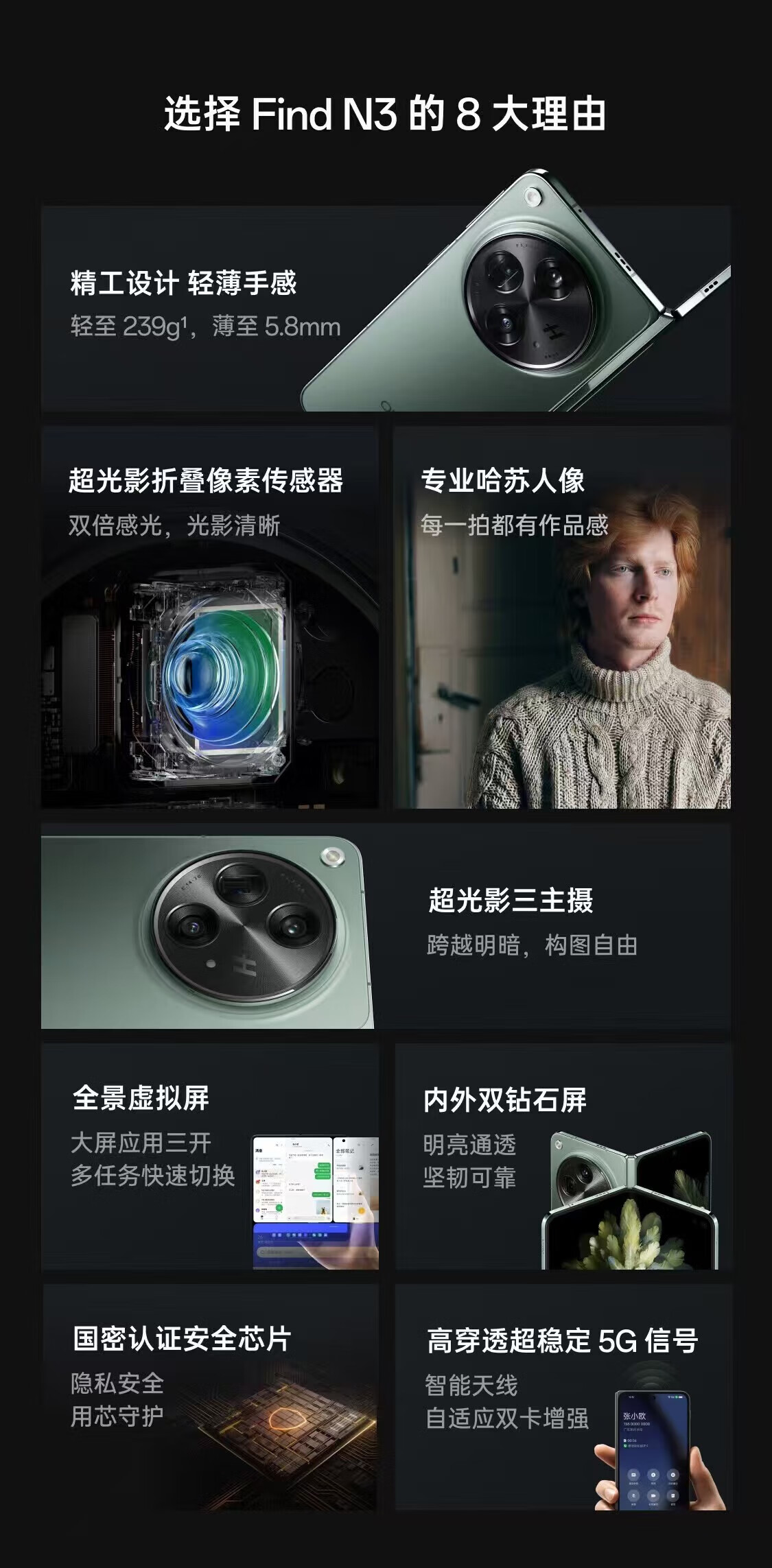 OPPOFind N3 【全新未拆封未激活+全国联保】 三主摄 安全芯片 哈苏人像 骁龙 5G 折叠屏 智能手机 千山绿 12GB+512GB