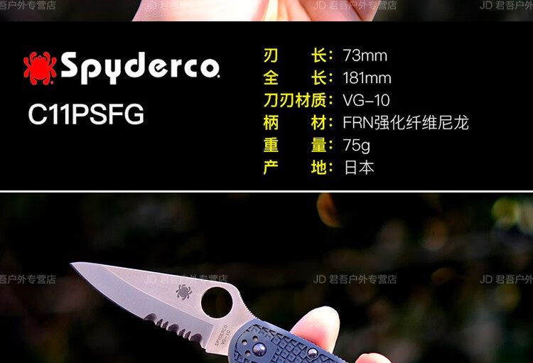 SPYDERCO 美国蜘蛛 C07pbk轻量化VG-10钢折刀