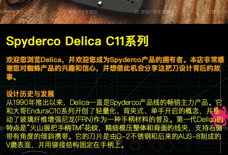 SPYDERCO 美国蜘蛛 C11 Delica4得利卡轻量化户外刀小刀露营 C11FSK390