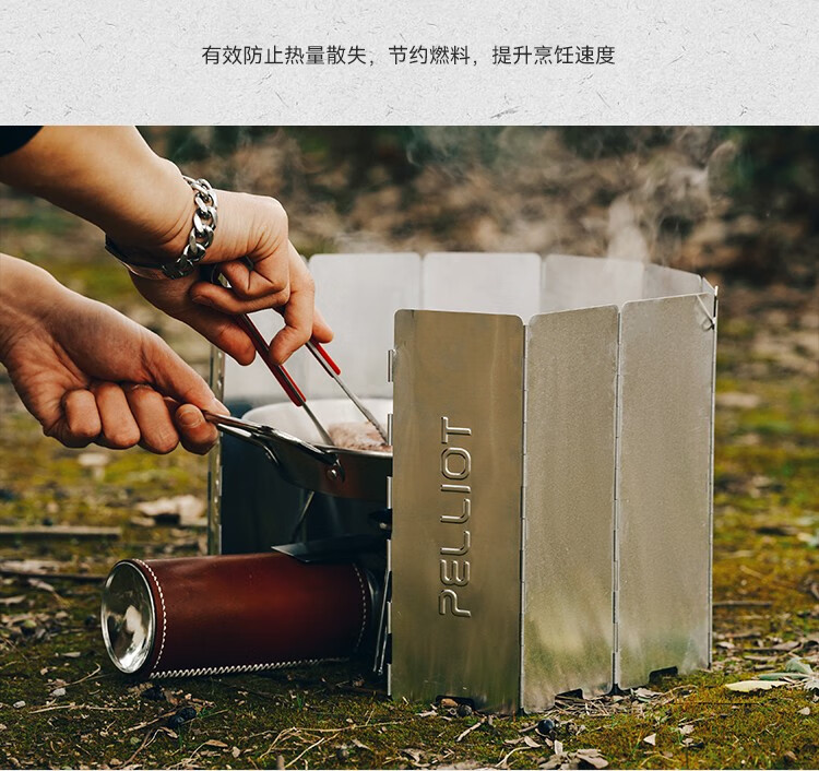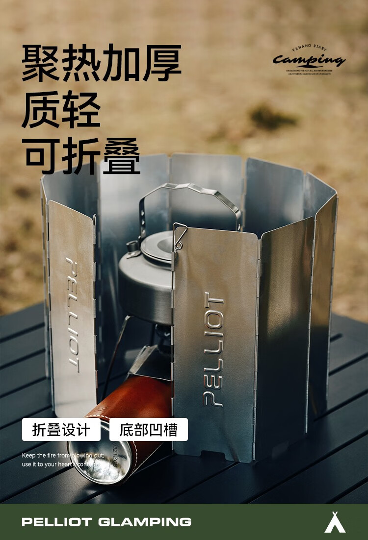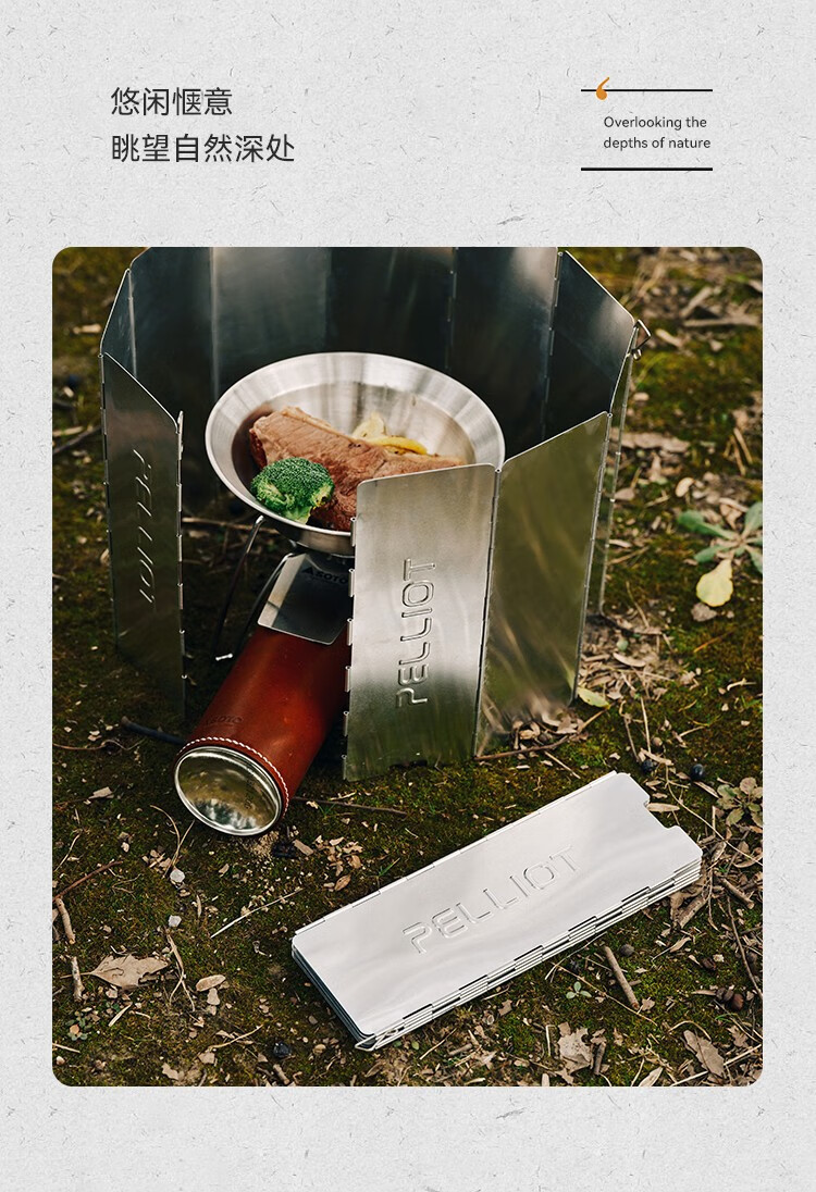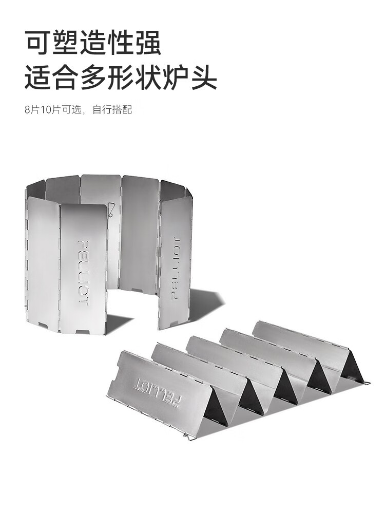 伯希和(Pelliot)户外野营炉具挡风板折叠屏风卡式炉具防风便携野餐野炊装备 白金色挡风板-10片