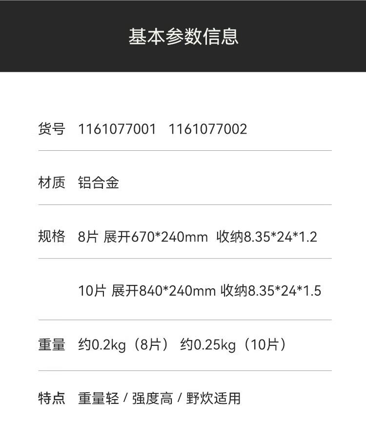 露营活动小帮手,出门携带方便快捷,占地面积较小,用起来感觉很舒服很顺手,非常值得购买。